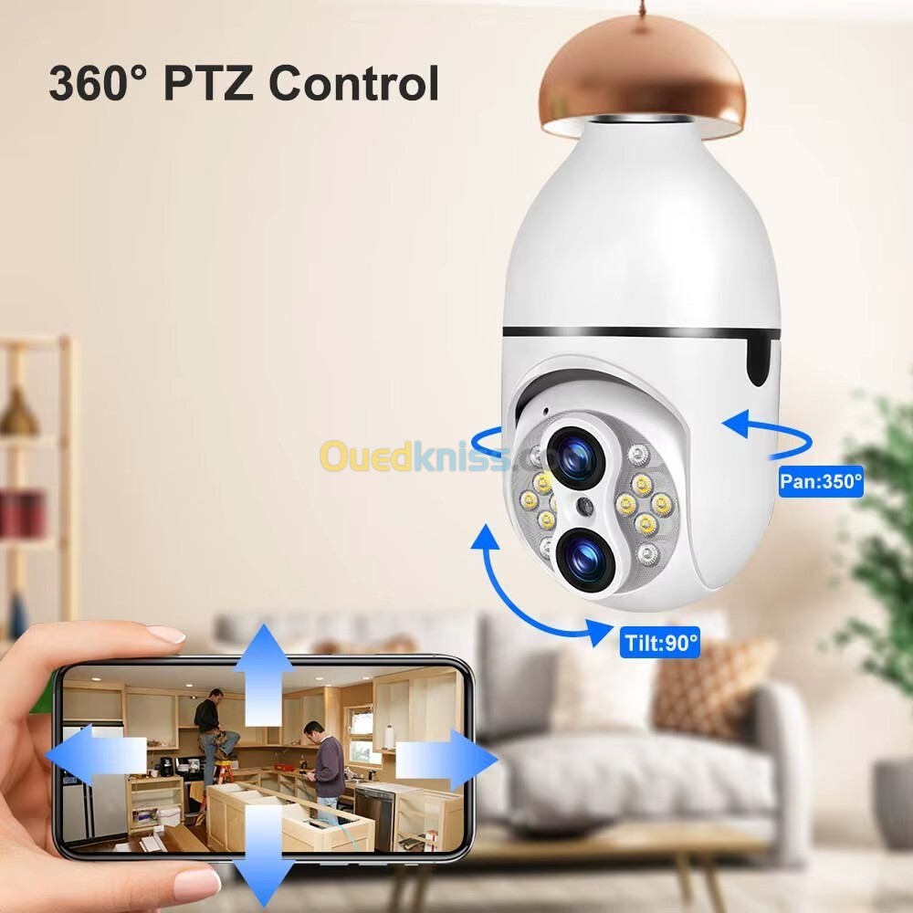 Caméra de Sécurité Ampoule à Double Objectif Suivi Automatique كاميرة مراقبة بميزة التتبع الذاتي