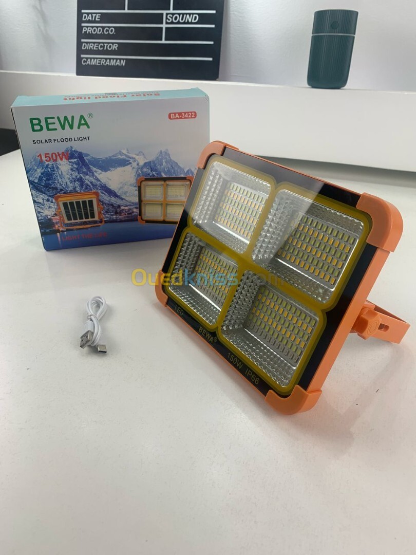 Projecteur LED Rechargeable 150W avec Panneau Solaire مصباح تخييم عالي السطوع