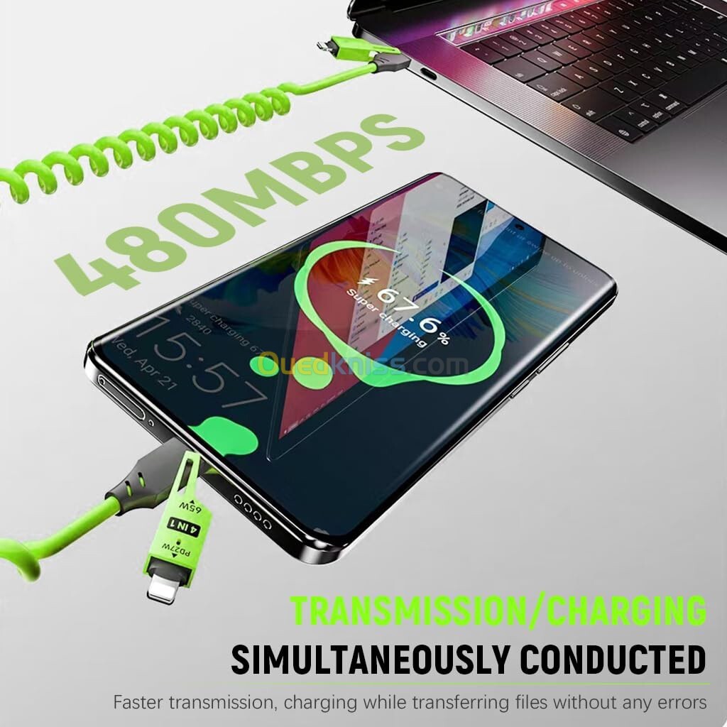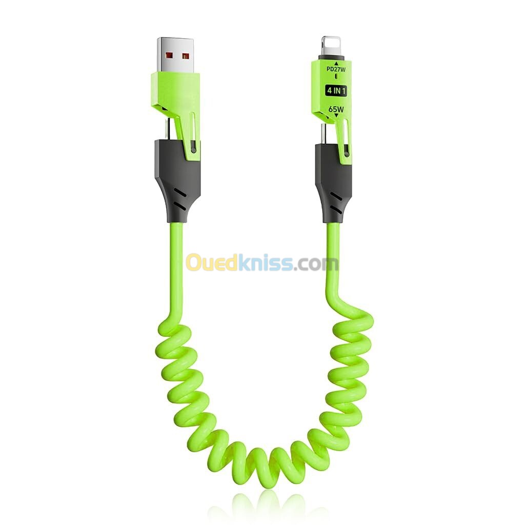 Câble USB 4 en 1 à Ressort - Charge Rapide 65W