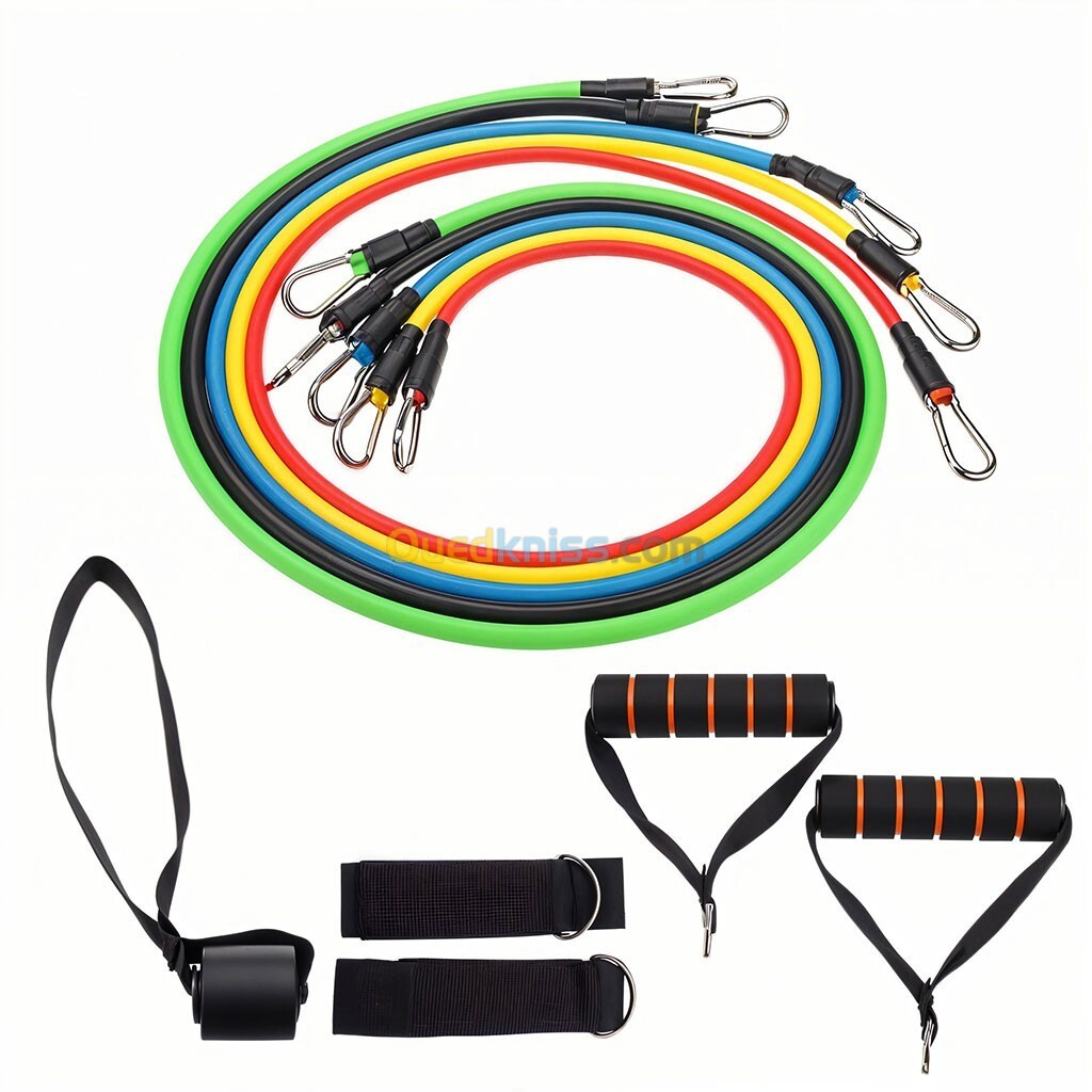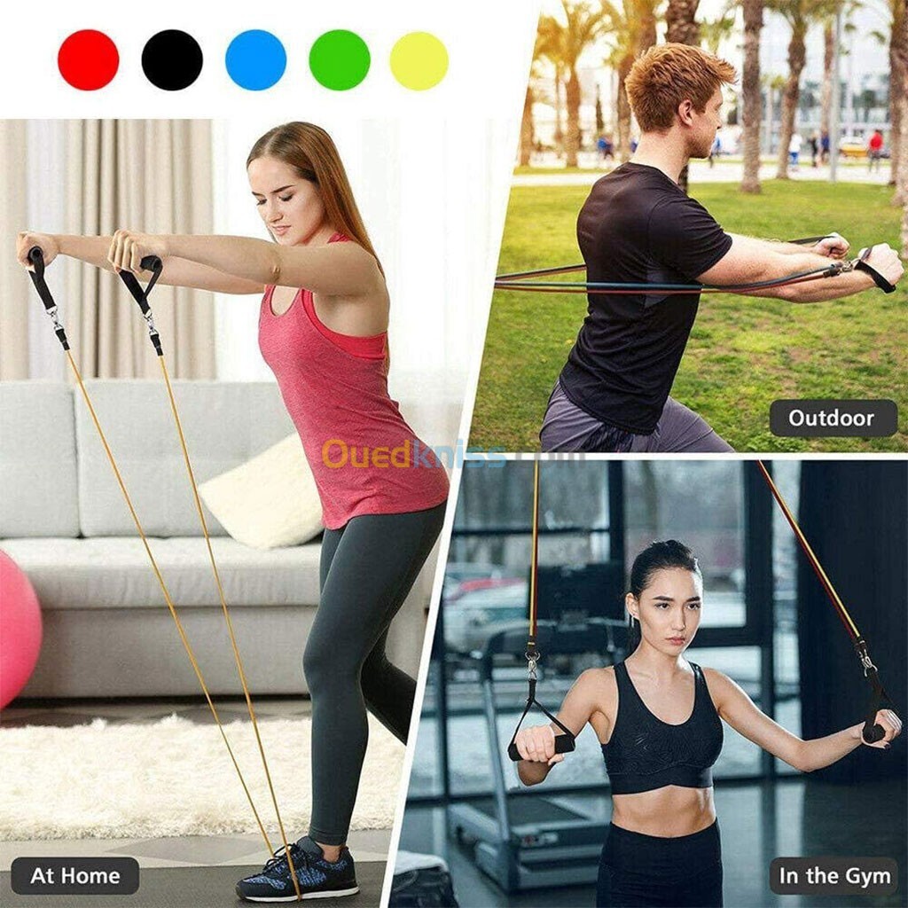 Cordes élastiques de musculation Ensemble de bandes pour sport 11Pcs (5Kg-45Kg) طقم التدريب المنزلي