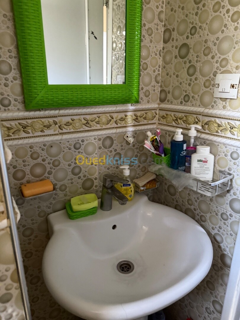 Agence immobilière baraka vent un appartement f4. À fouka. Cité 200 lgs. 1ere. Étage. Superficie : 90 m2. Très bien aménagé. Avec cuisine équipée +clim +citerne + dalle de sol. Avec acte + livret foncier. Prix 950 u négociable