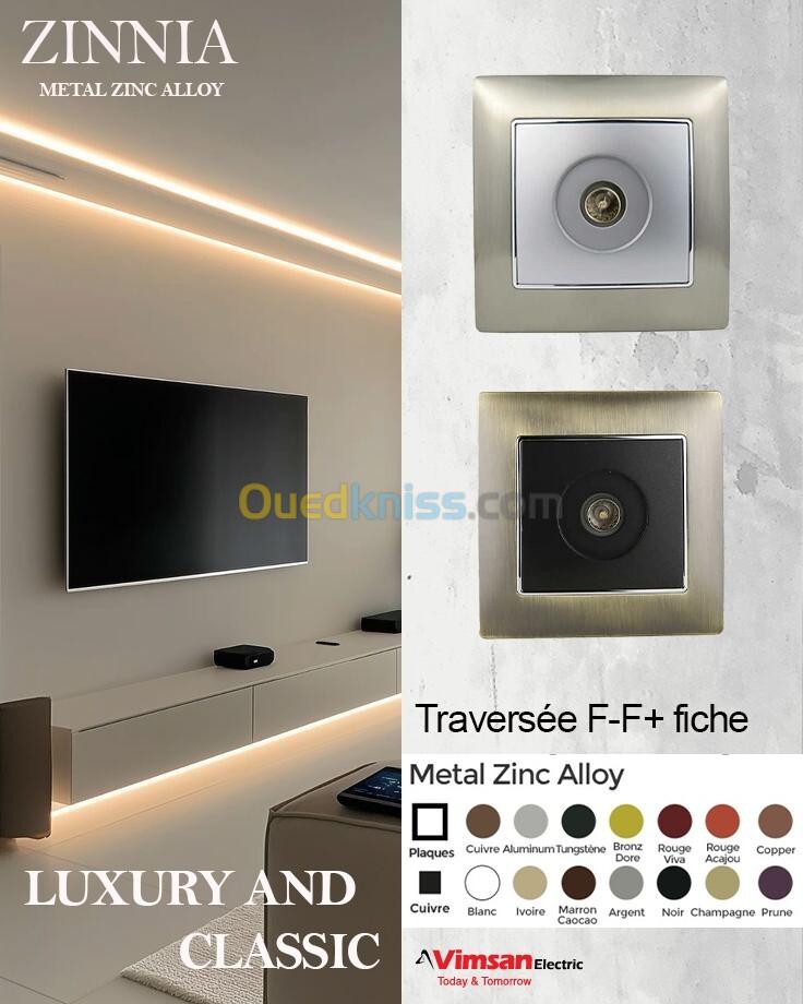 Simplifiez votre installation audiovisuelle grâce à notre prise traversée F-F+fiche ZINNIA METAL ZINC ALLOY compacte, discrète et idéale pour les home-cinéma.