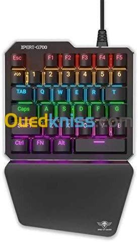 COMPATIBILITE ET JOUABILITE : Le combo XPERT G700 a été élaboré pour les gamers adeptes de FPS/MMORPG/SIMULATION sur console. Il vous permettra de jouer Xbox One, PS4, PS3, SWITCH, PC.. Fini les joysticks et les gâchettes qui bloquent, ce combo sera votre atout pour viser et se déplacer de façon fluide. DESIGN GAMER : Le clavier XPERT GAMEBOARD-K700 ( 8 effets prédéfinis) et la souris XPERT GAMEBOARD-M700 (11 effets prédéfinis) intègrent un rétro-éclairage LED qui vous permettra de jouer de jour comme de nuit. ROBUSTESSE : Les Patins antidérapants et la molette en métal crantée XXL font de la souris XPERT-G700 un véritable outil robuste. Le clavier XPERT GAMEBOARD-K700 est un clavier mécanique switch bleu garantissant solidité et longévité. Ces deux outils de gamers bénéficient chacunb d'un câble USB gainé et renforcé de 1m60. ERGONOMIQUE : Le clavier mécanique universel gaming XPERT GAMEBOARD-K700 et la souris XPERT-G700 ont spécialement été conçus pour les gamers. Ce combo vous assurera un grand confort grâce au repose pouce de la souris XPERT-G700. L'XPERT GAMEBOARD-K700 bénéficie également d'un repose poignet intégré. PROGRAMMABLE : Le clavier gamers est programmable grâce à son logiciel téléchargeable, profitez de 3 profils paramétrables et d'un éditeur de macros. Grâce aux touches, programmez les fonctions/raccourcis/multimédia/macros. Egalement full anti-ghosting. Vous pourrez trouver ce logiciel sur le site Spirit of Gamer / Support / Centre de téléchargement en sélectionnant Logiciel XPERT G700