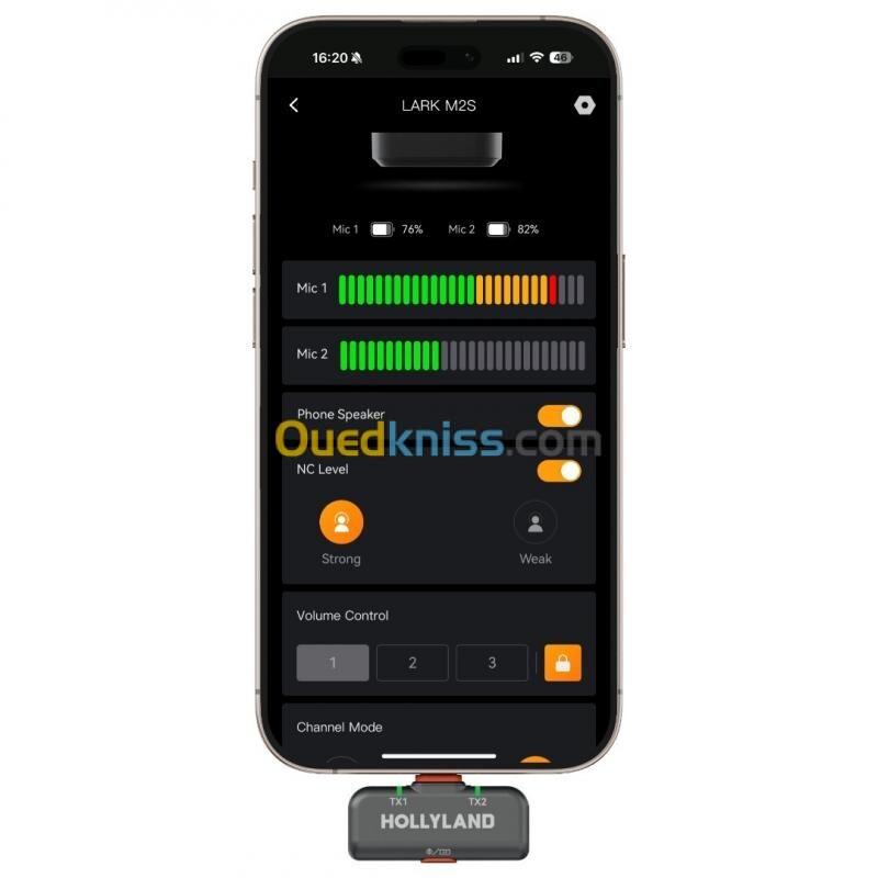 Connectez votre système LARK M2S à l'application LarkSound pour régler des paramètres comme le volume et la réduction de bruit, mettre à jour le micrologiciel ou consulter l'état audio en temps réel, le tout depuis votre smartphone compatible iOS ou Android. Votre smartphone peut également lire vos enregistrements lorsqu'il est connecté au récepteur sans avoir à le débrancher.