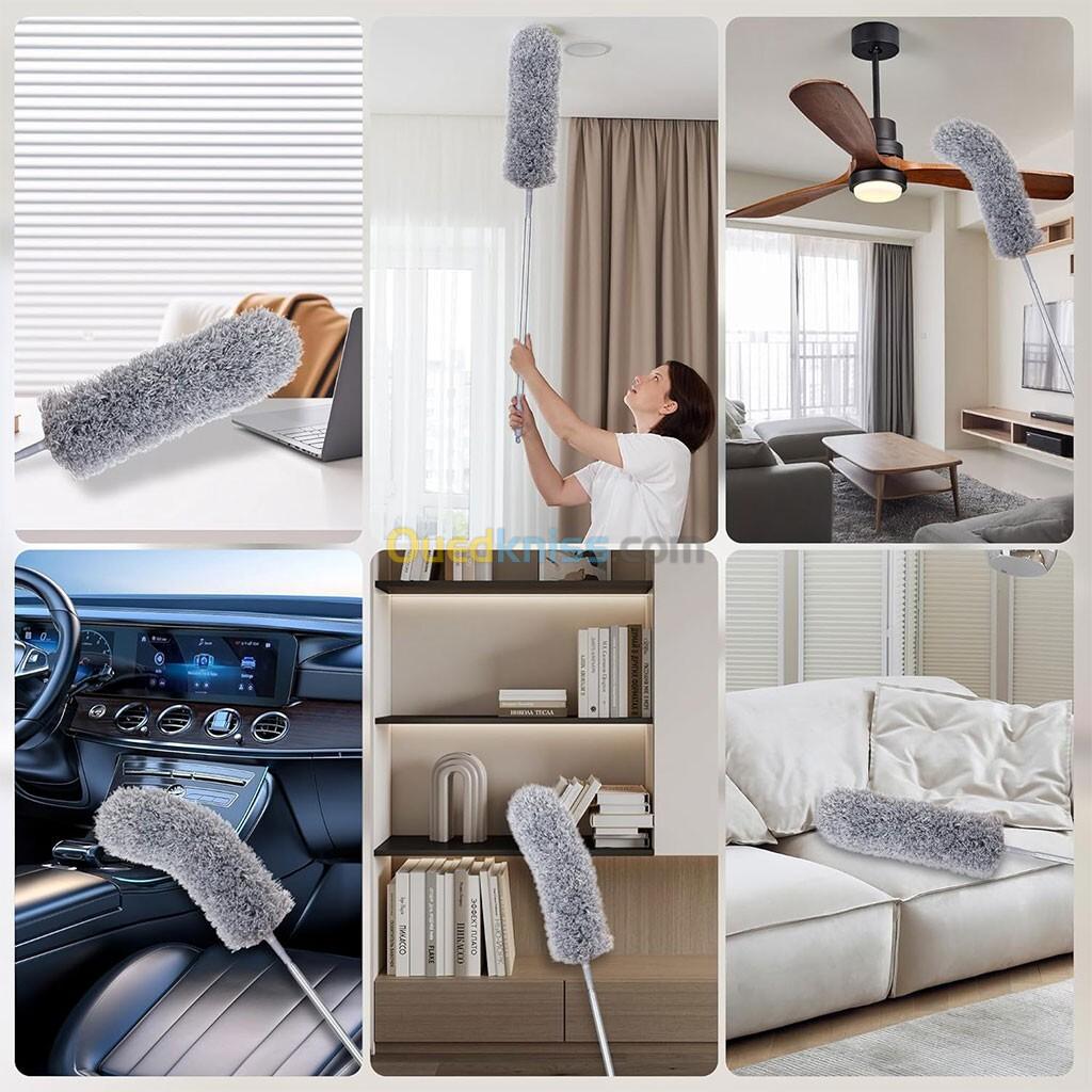 Plumeau télescopique Lavable en Microfibre 245cm– أداة تنظيف في الزوايا البعيدة Plumeau extensible : notre plumeau télescopique en acier inoxydable s’étend de 76,2 cm à 254 cm. Ajustez la longueur selon vos besoins – Pas besoin de monter sur une échelle ou un marchepied. Idéal pour le nettoyage en toute sécurité des plafonds, toiles d’araignée, murs, ventilateurs de plafond et lampes hautes.  Réutilisable : l’embout nettoyeur de poussière est amovible et lavable. Avec un trou de préhension pratique, vous pouvez facilement l’accrocher au mur ou à la porte. La poignée antidérapante assure une prise en main confortable et stable pendant le nettoyage.  Microfibres ultra denses & Technologie améliorée : le plumeau est fabriqué en microfibre de haute qualité avec une forte adsorption électrostatique. Il capture rapidement la poussière fine et les poils des voitures, des ventilateurs de plafond et des cadres photo, réduisant le temps d’élimination de la poussière de moitié. La tête en microfibre flexible couvre de grandes surfaces et s’adapte facilement aux endroits difficiles d’accès. Tête flexible avec capuchon en silicone souple : la tête flexible en microfibre est flexible et protège les surfaces. Contrairement à d’autres chiffons à poussière, il ne laisse pas de taches sales ou visibles. Le capuchon en silicone souple protège les murs et les plafonds des rayures et protège également les fenêtres et les canapés. Votre partenaire de nettoyage indispensable : ce plumeau léger est le compagnon idéal pour vos tâches ménagères. Il vous aide à faire le nettoyage plus rapidement et plus efficacement et répond à tous vos besoins. Un choix idéal pour les hommes, les femmes, les enfants et les personnes âgées – pour une maison propre 🧹 ريشة تنظيف تلسكوبية متعددة الاستعمالات – الحل المثالي لبيت أنظف بلا مجهود احصلي على نظافة مثالية مع هذا المنفض التلسكوبي من الفولاذ المقاوم للصدأ القابل للتمديد من 76 سم حتى 254 سم. لا حاجة بعد اليوم إلى السلالم أو الكراسي – نظفي الأسقف، المراوح، الجدران، والثريات بكل أمان وسهولة! ✅ المميزات الرئيسية: 📏 قابل للتمديد: من 76.2 سم إلى 254 سم لتصلين حتى لأعلى النقاط دون عناء.🔄 إعادة الاستخدام: رأس المنفضة قابل للإزالة والغسل، مع حلقة للتعليق على الحائط أو الباب.✋ مقبض مريح مضاد للانزلاق: يضمن لك استخدامًا آمنًا وثابتًا أثناء التنظيف.🌟 ألياف ميكروفايبر فائقة الكثافة: تلتقط الغبار والشعر بسرعة بفضل الشحنات الكهروستاتيكية – توفير نصف وقت التنظيف!🌀 رأس مرن بغطاء سيليكون ناعم: يحمي الأسطح من الخدوش ولا يترك أي آثار أو بقع.🏠 خفيف الوزن وسهل الاستخدام: مثالي للجميع – رجال، نساء، أطفال وكبار السن – لتبسيط مهام التنظيف اليومية. ✨ منفضة عملية وضرورية تجعل التنظيف أسرع، أسهل وأكثر أمانًا… لتستمتعي دائمًا ببيت نظيف ومنظم.