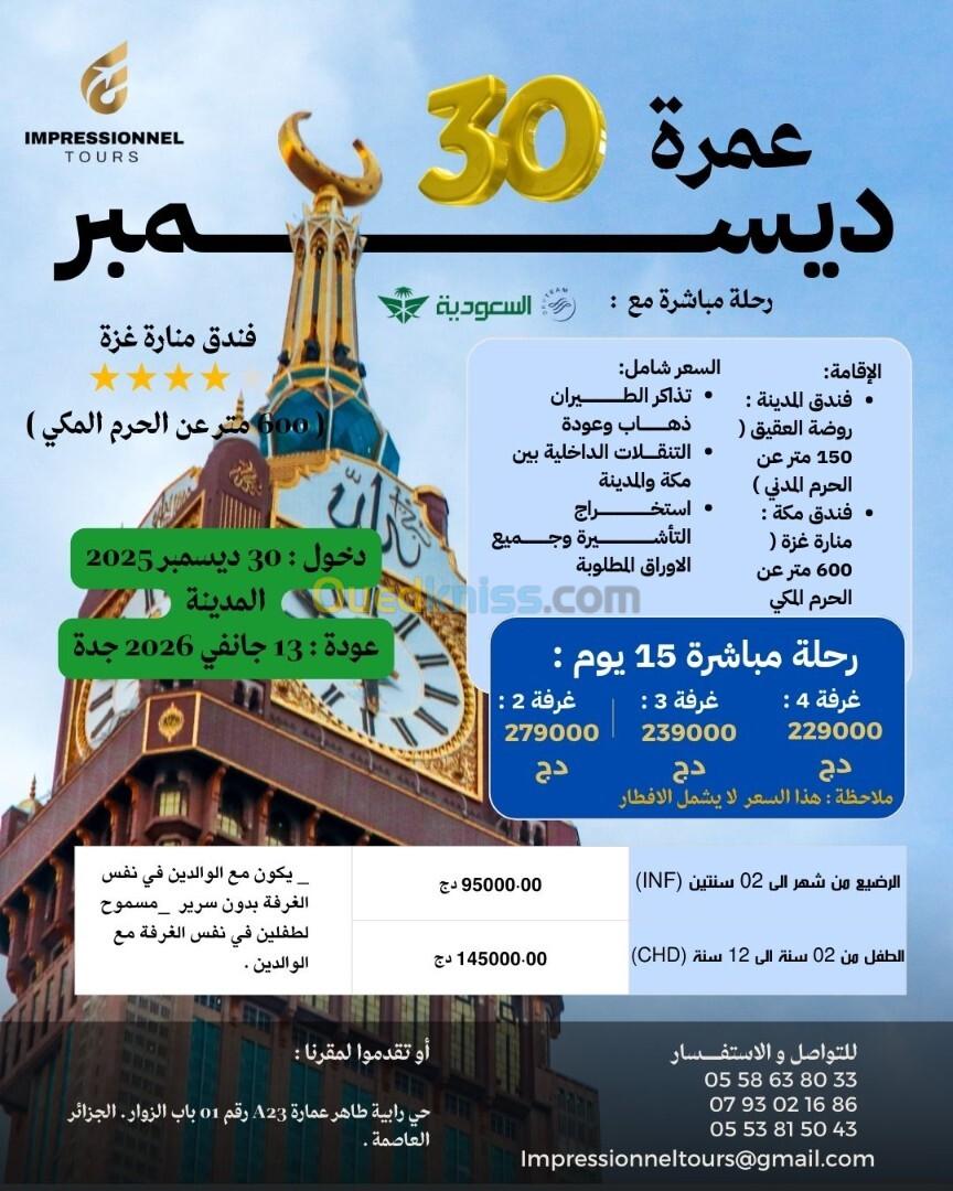 عمرة 30 ديسمبر 2025 / Omrah 30 décembre 2026