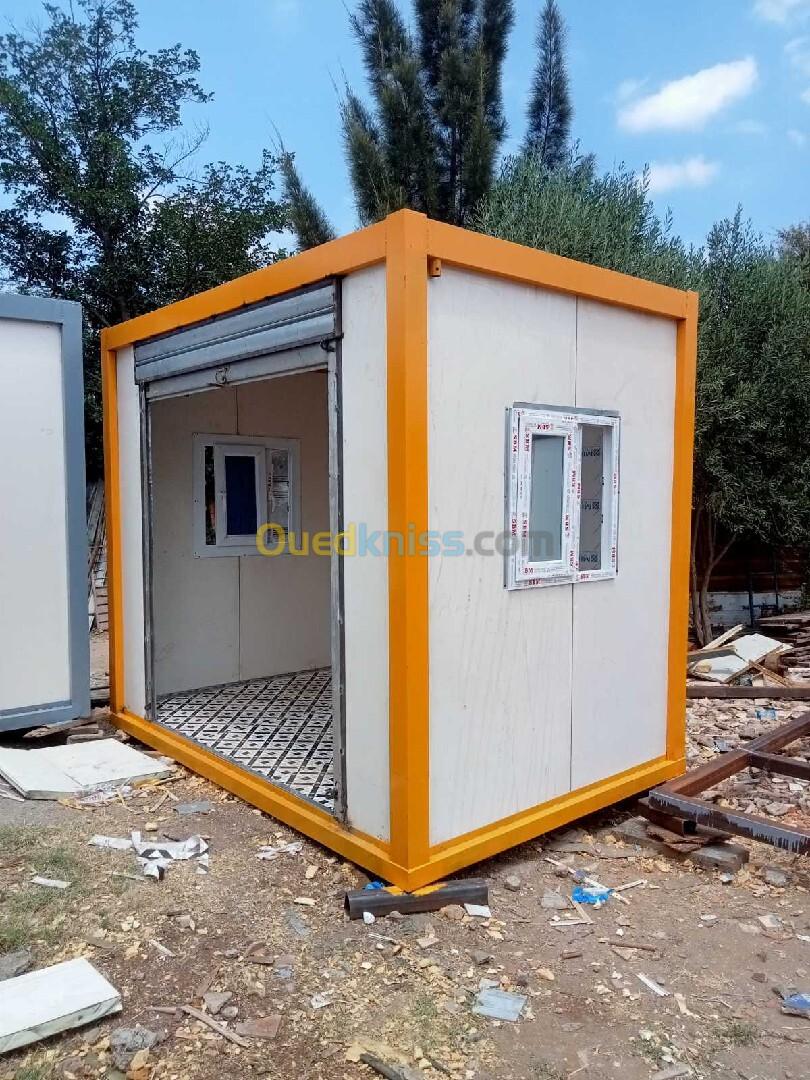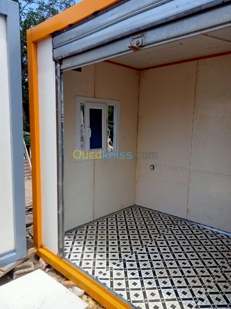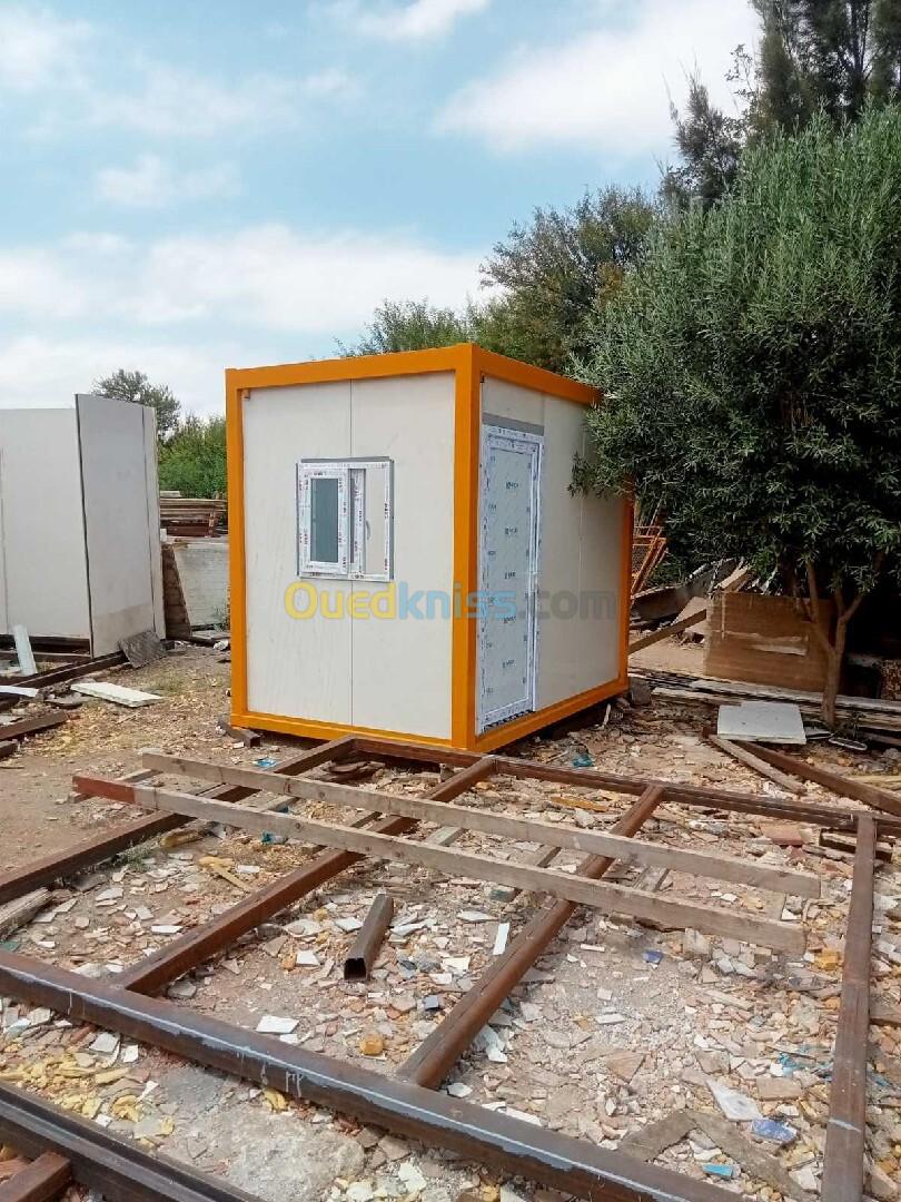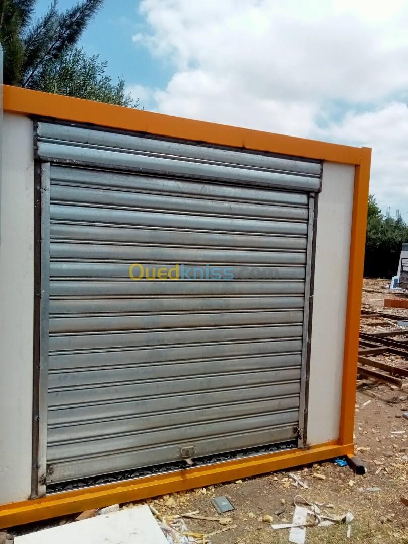 Panneau Sandwiches 40mm Installation électrique Gouttière Gerflex Plinthe Une porte et une fenêtre en pvc Rideau manuel Carcasse soudé.