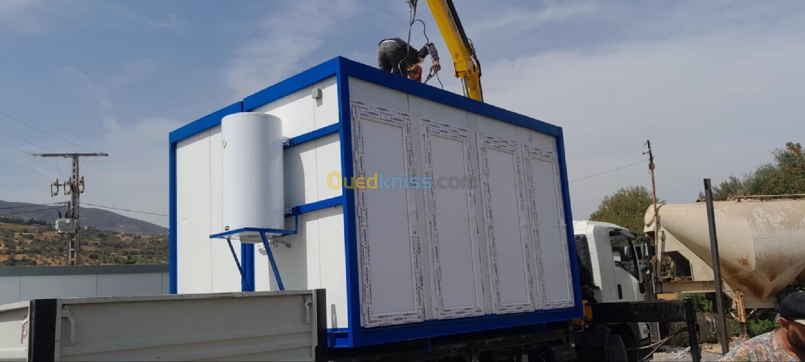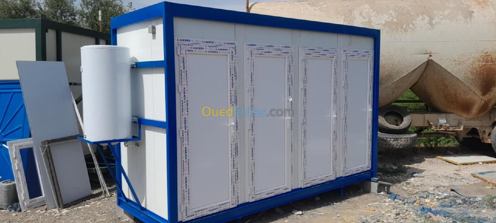 Panneau Sandwiches 40mm Structure métallique tube carré 90mm Renforcer H120mm Installation électrique et plomberie Dalle de sols 4 douches🚿 Porte et Vasistas en pvc Support et cumulus 200L 👉🏻 le même modèle sans cumulus douche ou WC
