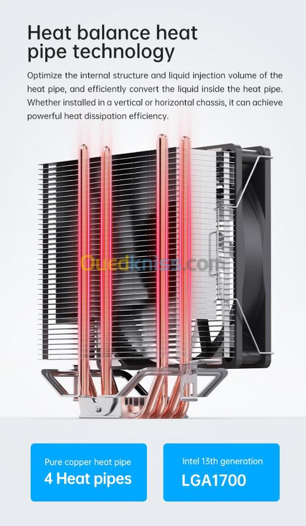 Compatible avec les processeurs Intel : LGA1700, 1200, 775, 1150, 1151, 1155, 1156 et AMD : AM5, AM4, AM3+, AM3, AM2+, AM2, FM2+, FM2, FM1. Ce radiateur offre d'excellentes performances pour les systèmes informatiques modernes hautes performances, que ce soit pour les jeux ou une utilisation quotidienne intensive.