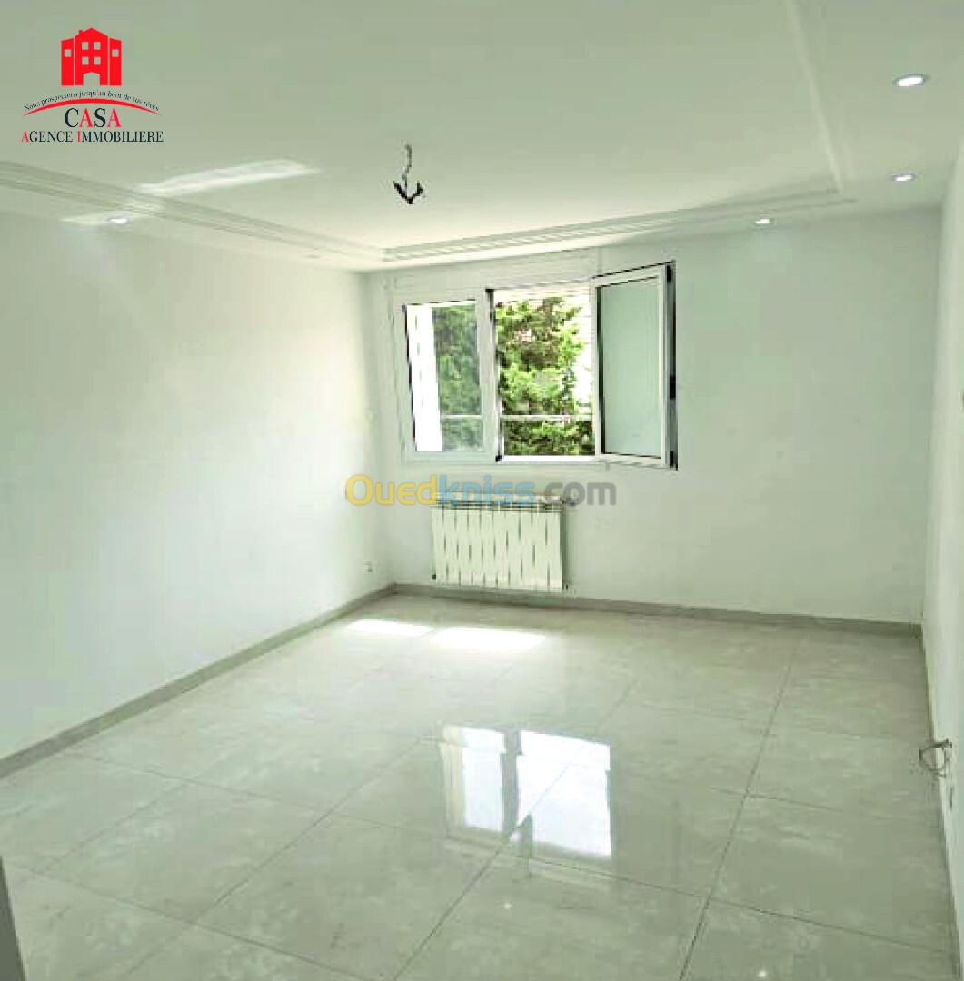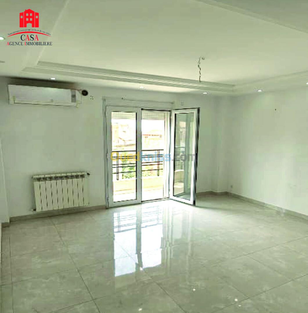 Cheraga, Zouaoua, dans un quartier calme, Casa Immo propose à la vente un appartement F4 situé au 1er étage d'une résidence sécurisée 24H/24H, sans ascenseur, d'une superficie de 104m². L'appartement est ensoleillé, spacieux et dispose de toutes commodités : cuisine équipée, chauffage central, climatisation, balcon, placard de rangement et box de stationnement dans le parking de la résidence. Fourni avec acte et livret foncier.