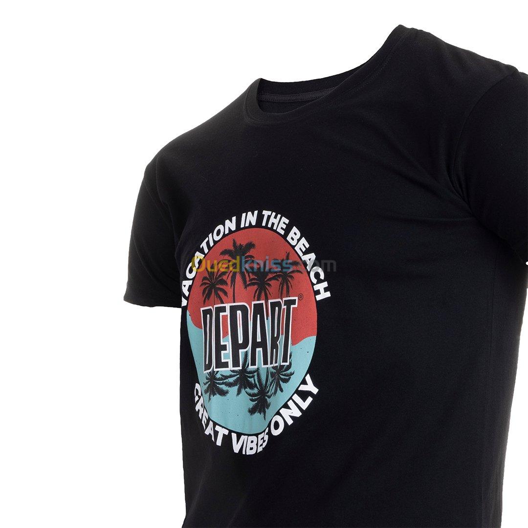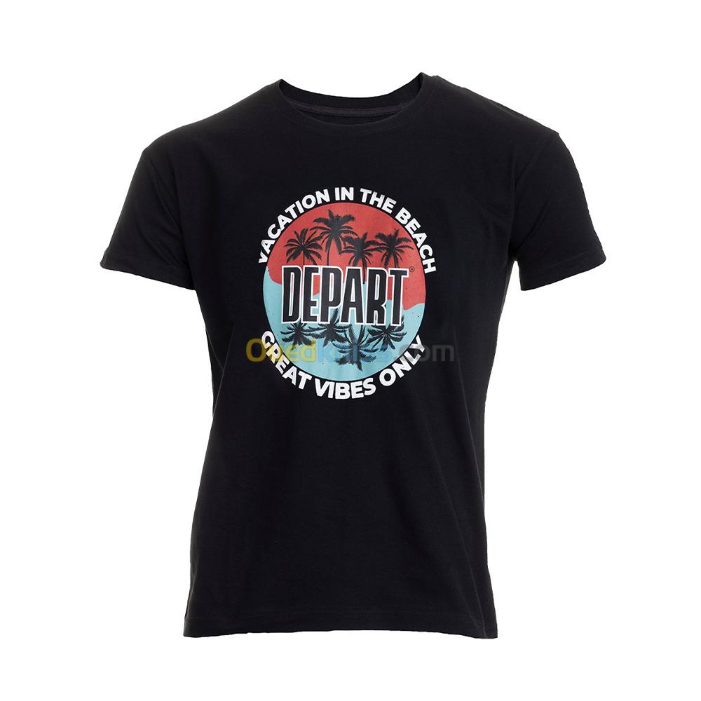 T-SHIRT HOMME DEPART NOIR 100% COTON PRINT
