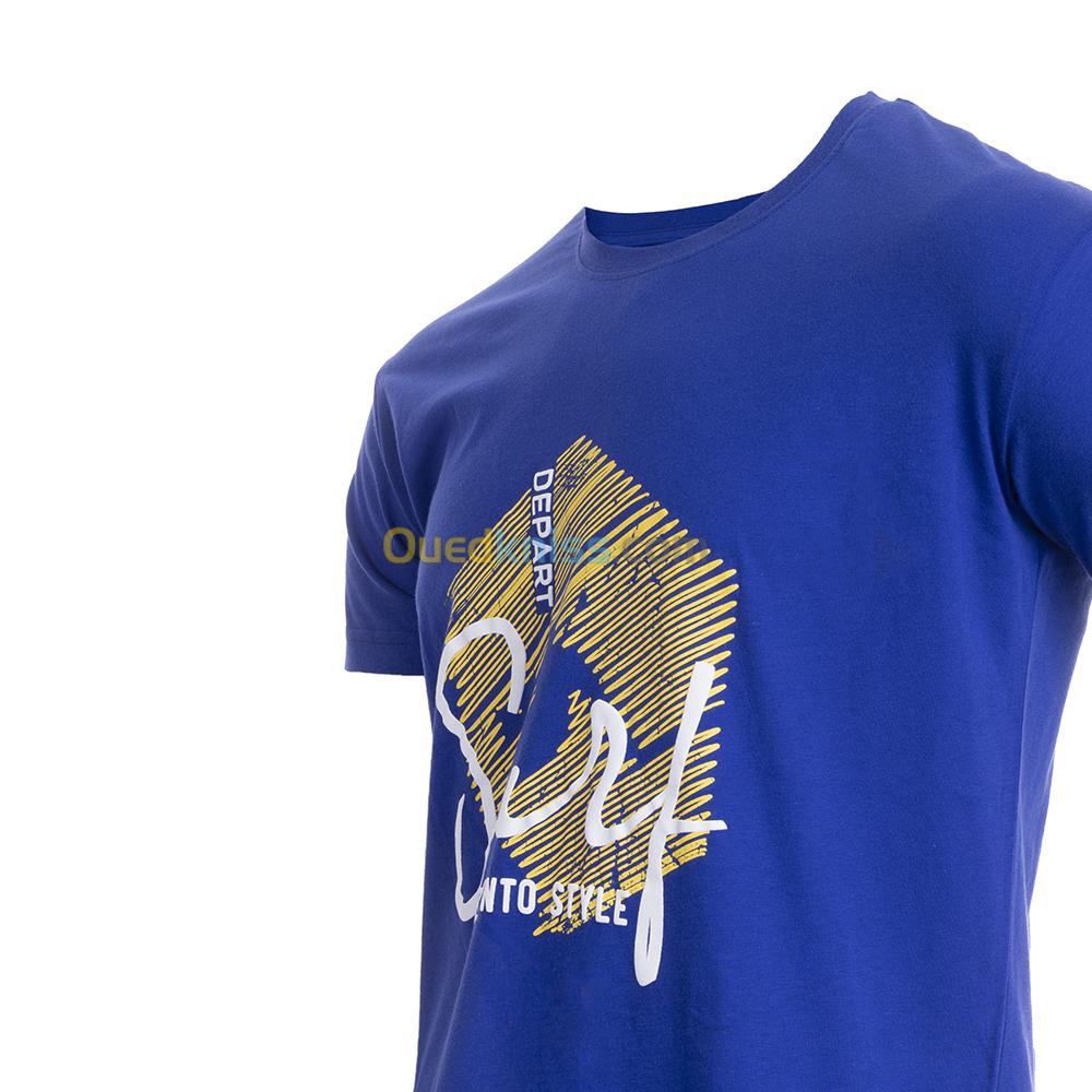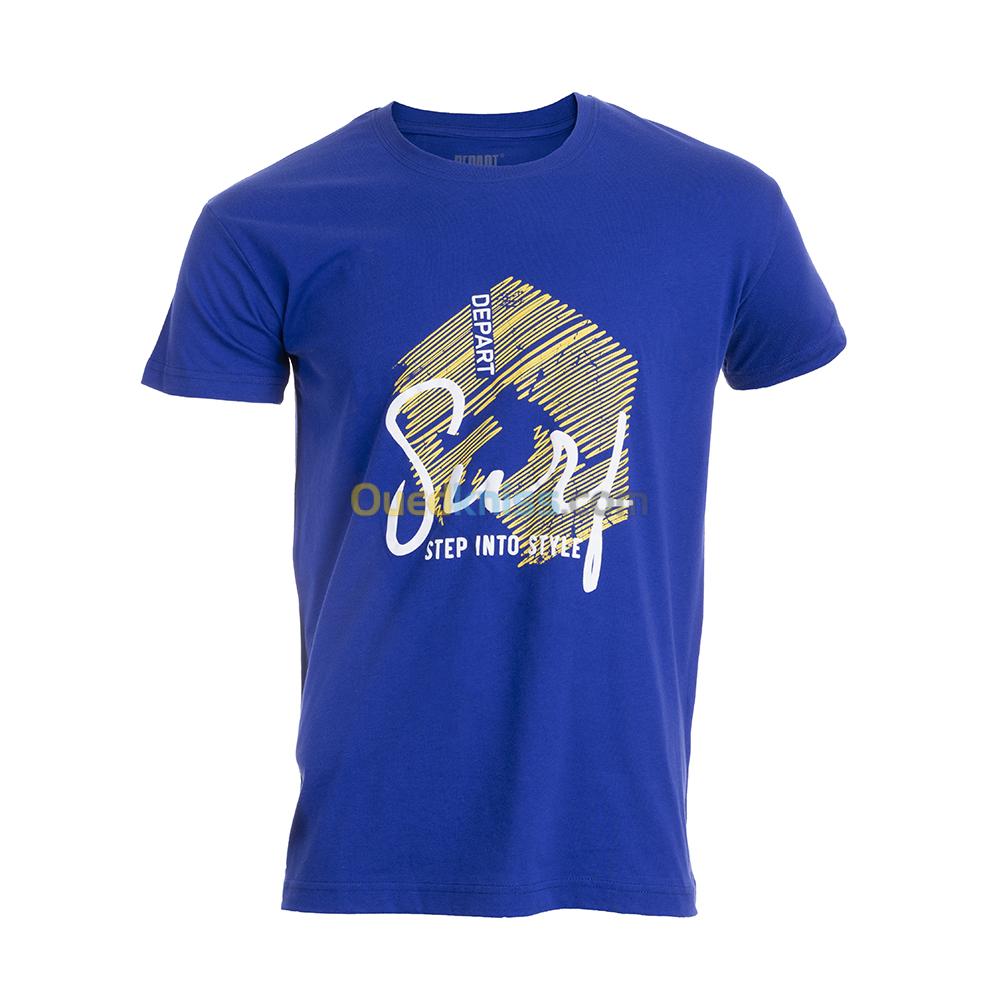 T-SHIRT HOMME DEPART BLEU 100% COTON PRINT