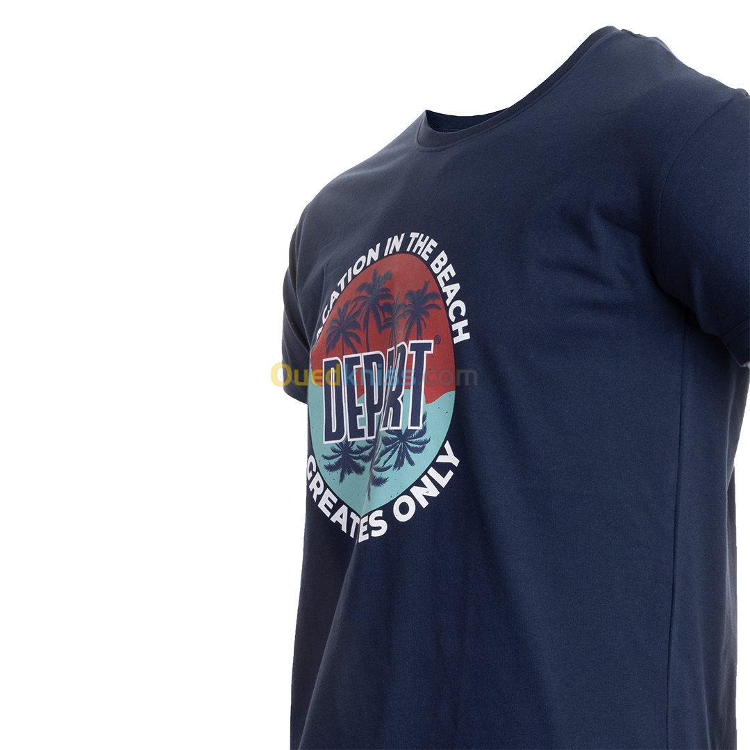 T-SHIRT HOMME DEPART BLEU MARINE 100% COTON PRINT
