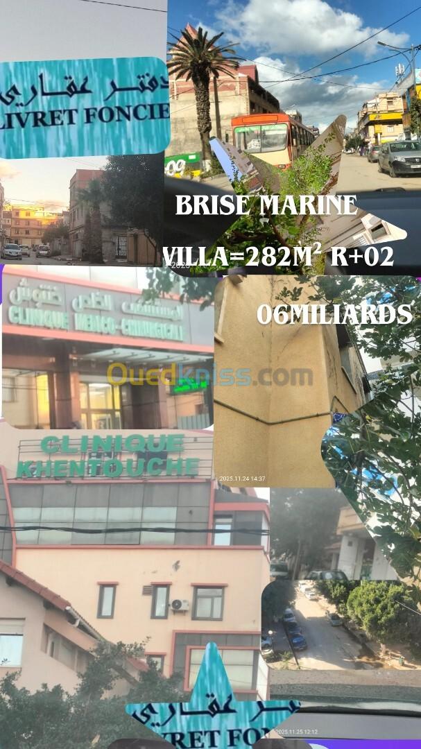 Bureaux d'affaires mouloudi Bordj el bahri brise marine Met en vente une villa sup 282,m.bati 160m² r+2 en f7 composée un garage sup de de 100m² avec 02 portail + a Une cour de de120m² premier étage composé un F3 bien fini 2em composé un F4 toutes commodités les magasins arrêt de bus mosquée plus proche endroit très propre sécurisée et très bonne voisinage prix 06 milliards et 200 illions