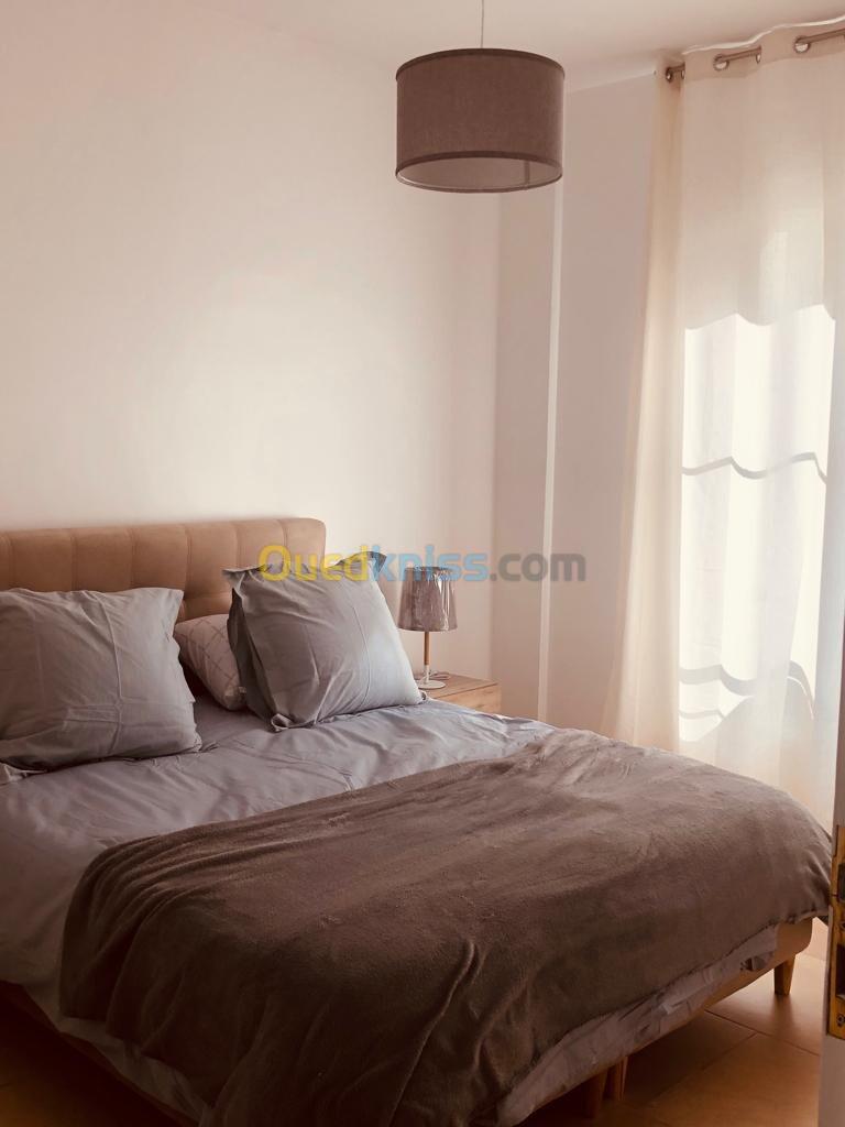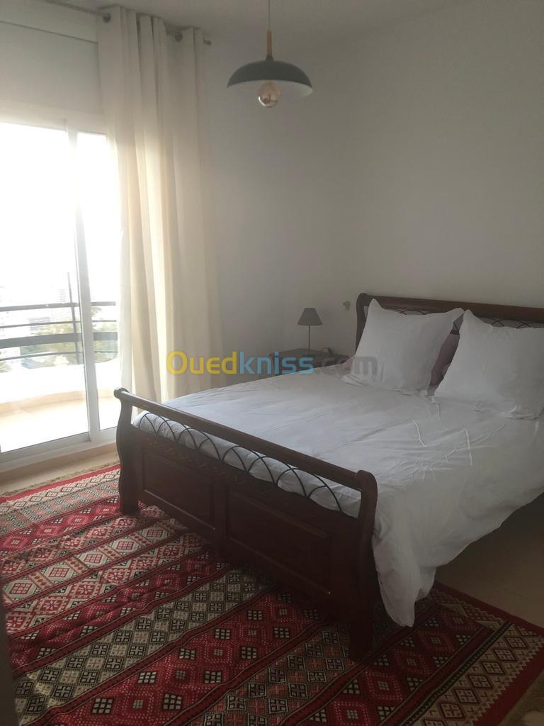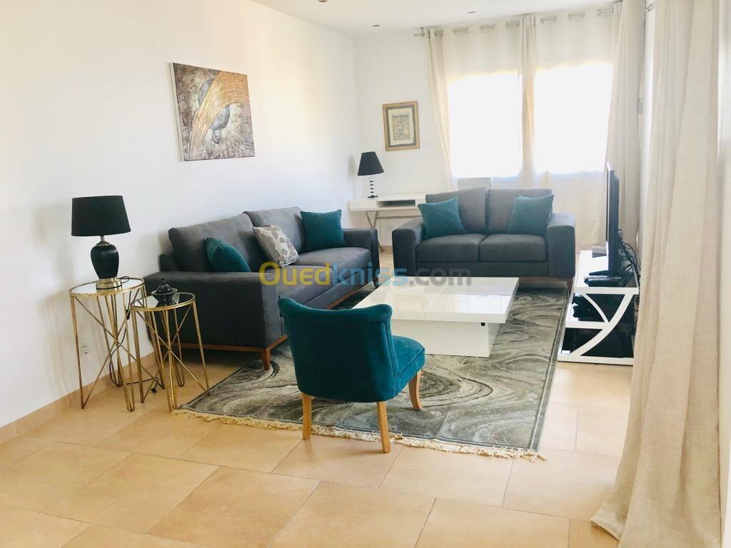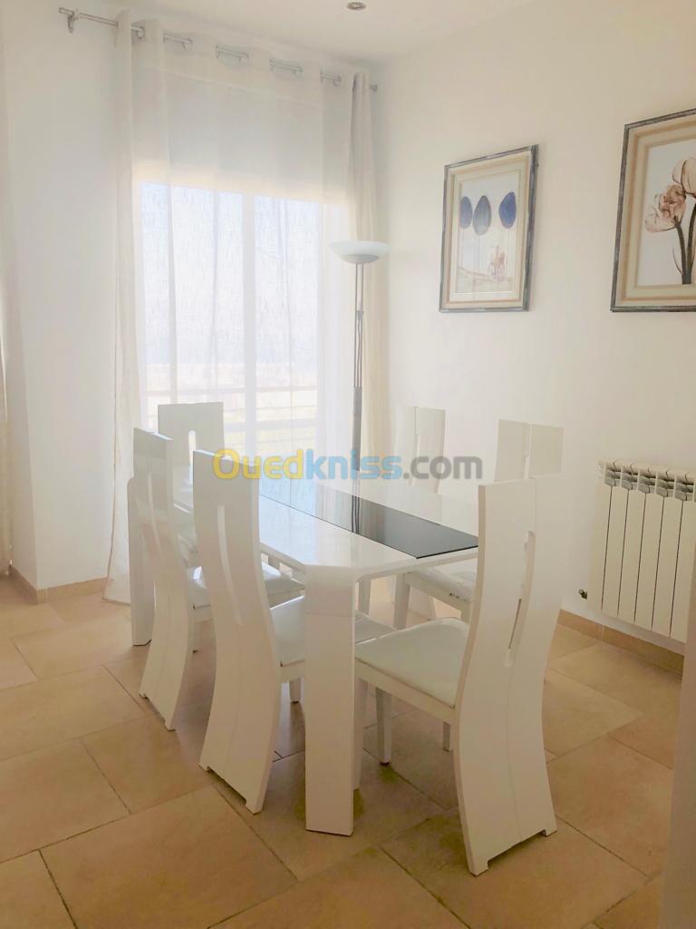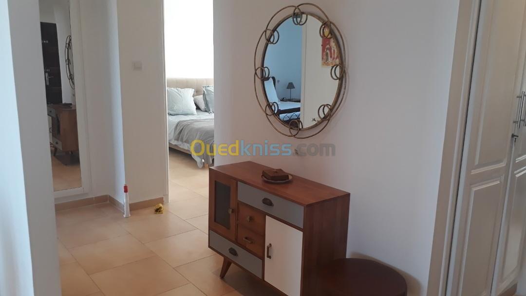 Loue superbe appartement entièrement équipée salon salon manger cuisine equipe et deux chambres avec une belle terrasse vue degager sur mer libre