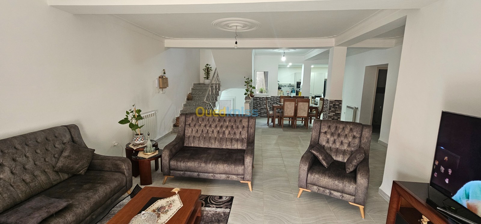 ag immo met en vente a chebli centre belle villa sup: 130m2 bâtie :110m2 R+2+terrasse, reparti comme suit ; rdc 2 garages une cour sanitaire, 1er étage cuisine équipée salon salon a manger une chambre sanitaire, 2ème étage 3 chambres sanitaire une terrasse, 3ème étage une grande terrasse. La villa contient chauffage centrale climatisation bach à eau . Bien situe dans un cartier calme et habitable toute commodités disponible. Pour plus d'etaille merci de nous contacter.