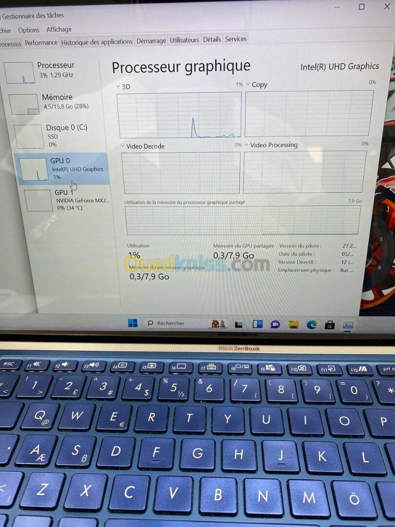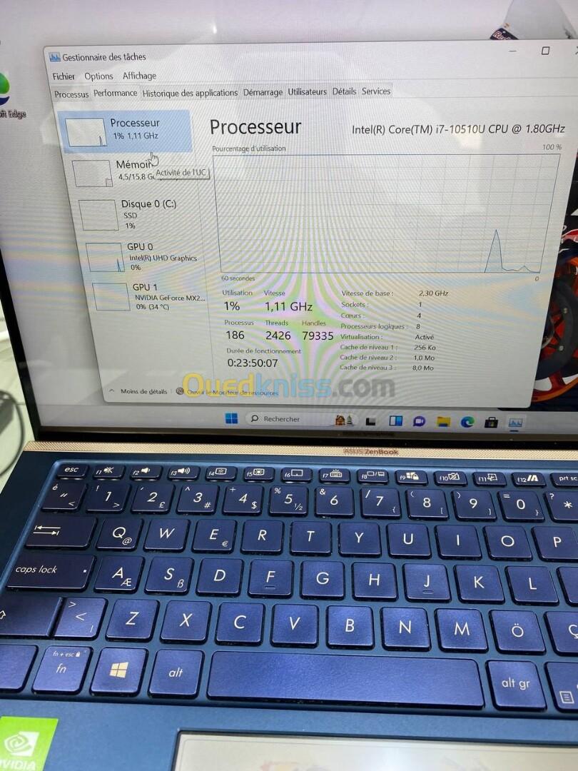 ASUS ZENBOOK 13.3'' I7-10TH 16RAM 512 SSD NVIDIA MX 250 02GB DÉDIÉE BATTERIE +3HEURES
