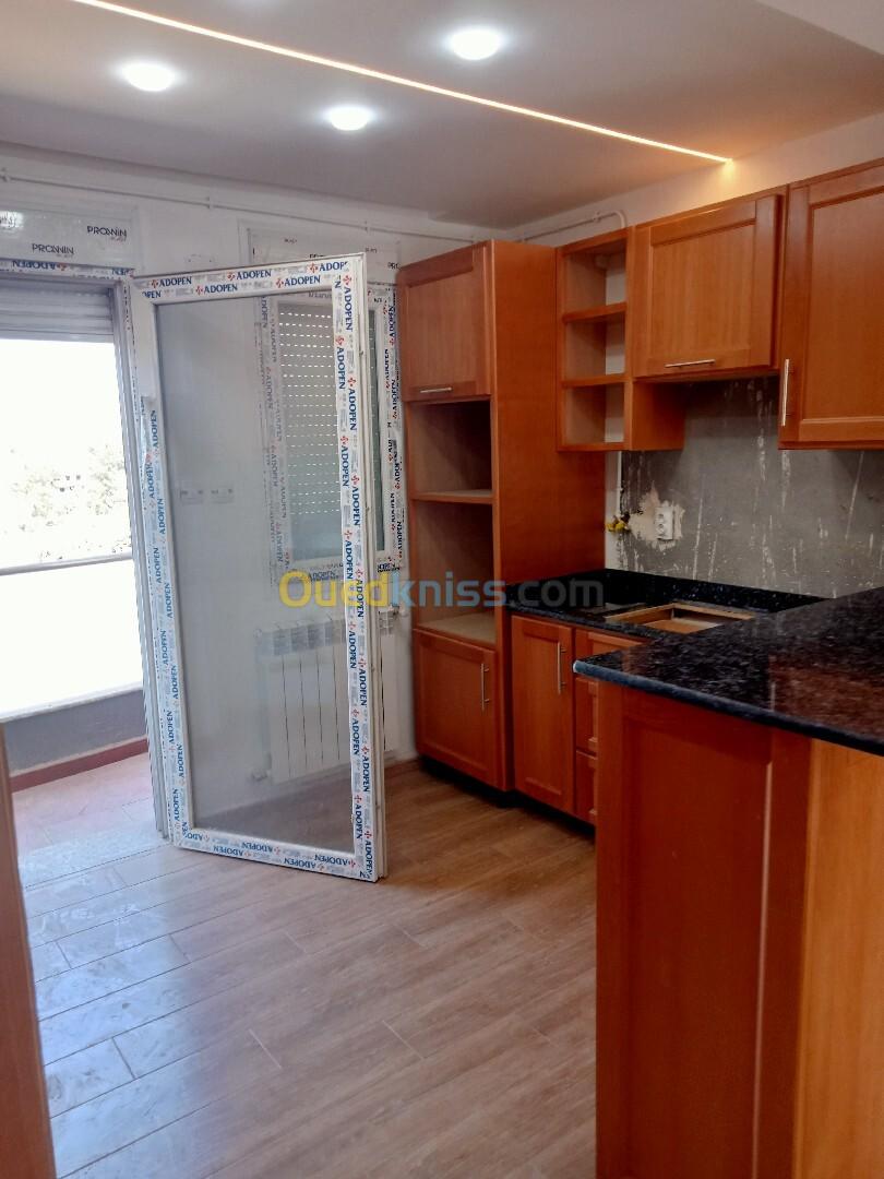 Agence immobilière meftah met en vente une très belle grande F3 a Hadjout cité 50logts dans un promotions (résidence fermée et clôture)3eme étage, superficie 96m, tout commodités, cuisine équipée chauffage central aire deux façades, avec box de stationnement,ou plein centre ville, acté livré fonciers contacter nous 0670/43 33 33