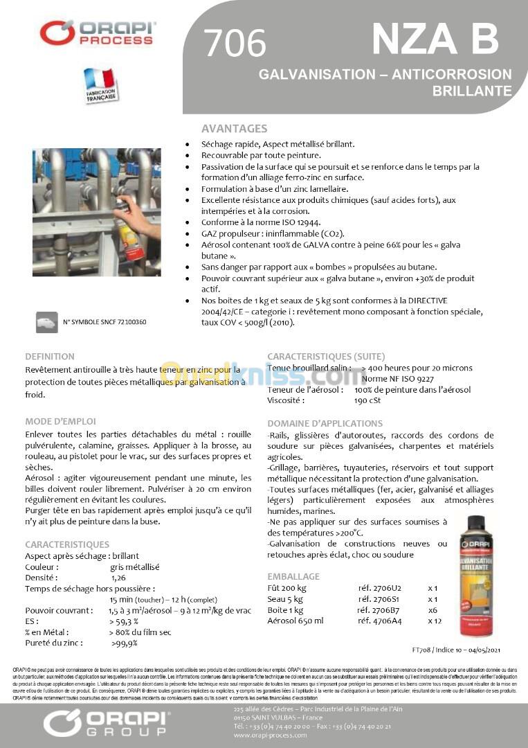 -Toutes surfaces métalliques (fer, acier, galvanisé et alliages légers) particulièrement exposées aux atmosphères humides, marines.