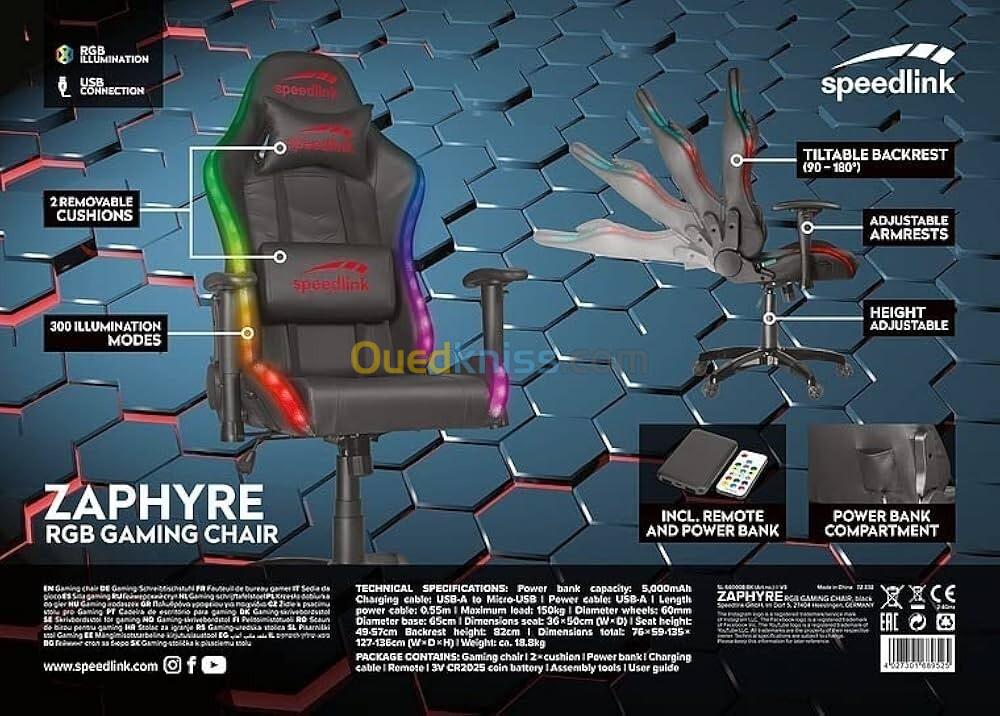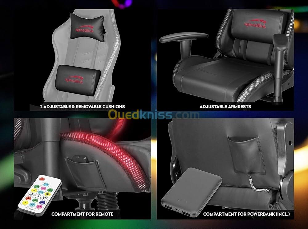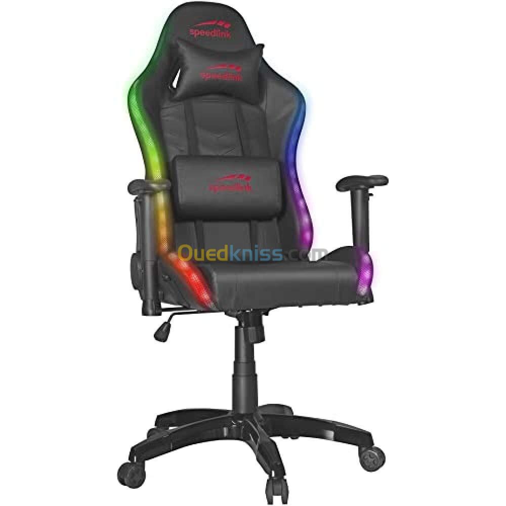 Chaise de Gaming Speedlink ZAPHYRE300 Effets RGB Coussin Cervical et Lombaire avec Batterie Externe, noir