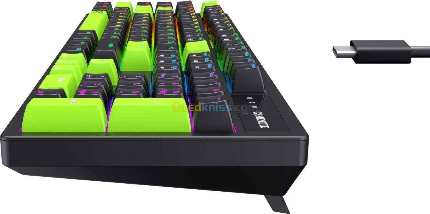 Le clavier mécanique gaming Havit KB893L est conçu pour offrir une frappe précise et réactive grâce à ses switchs bleus qui assurent un retour tactile et sonore distinctif, avec une durabilité de 50 millions de frappes, un rétroéclairage RGB personnalisable avec plusieurs effets lumineux, une fonction anti-ghosting complète (N-key rollover), une interface USB Type-C détachable, un câble tressé de 1,8 m, une structure en plastique ABS robuste, une compatibilité avec Windows, macOS et Linux, des dimensions de 445×135×44 mm, un poids d’environ 744 g, et une tension de fonctionnement de 5 V ± 0,5 V.