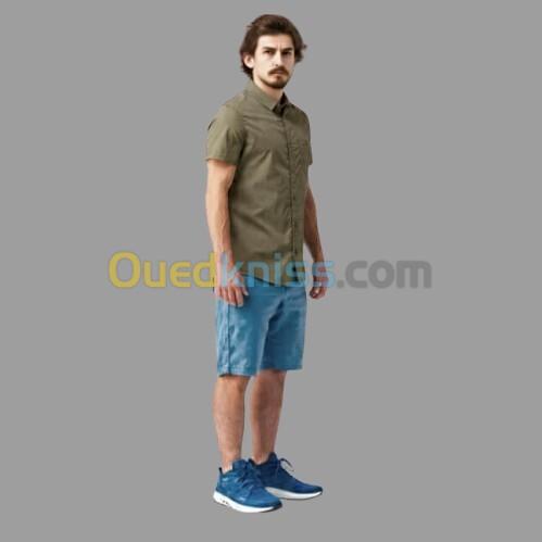 CHEMISE DE TREKKING VOYAGE TRAVEL 100 MANCHES COURTES BRUN HOMME