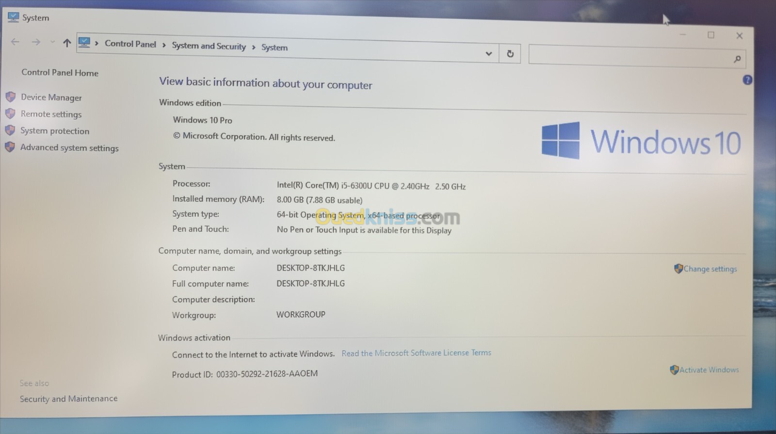 Système opérateur: Windows 10 Pro