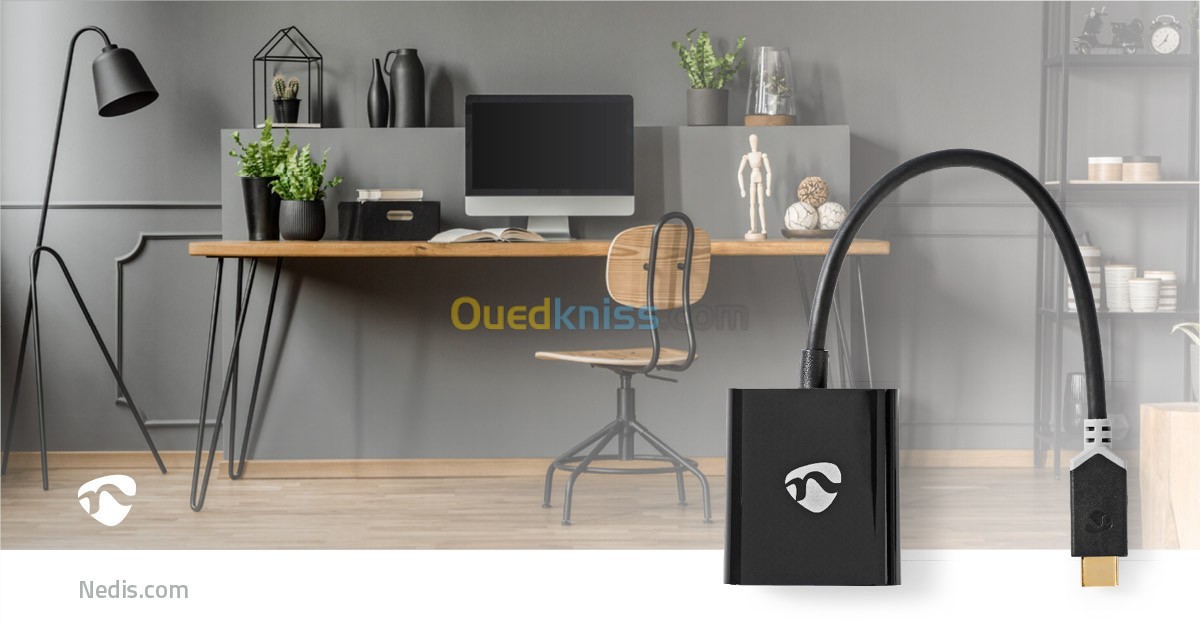 Cet adaptateur Nedis vous permet de convertir une source USB-C en signal HDMI. Vous pourrez ainsi transférer les images de votre ordinateur vers votre téléviseur ou autre appareil équipés d'un port HDM