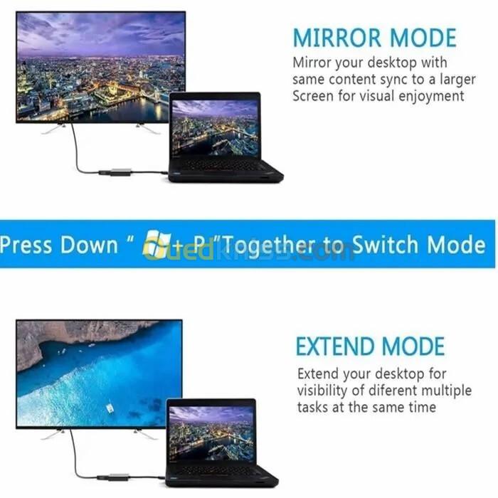 • Mode miroir et extension: Ce convertisseur USB vers HDMI dispose d'un mode extension qui permet à votre ordinateur portable d'afficher plusieurs tâches en même temps. Le mode miroir donne à votre ordinateur portable un grand écran pour un plaisir visuel. Cette Adaptateur USB vers HDMI est idéale pour le home cinéma, la vidéoconférence, la formation en entreprise et bien plus encore.