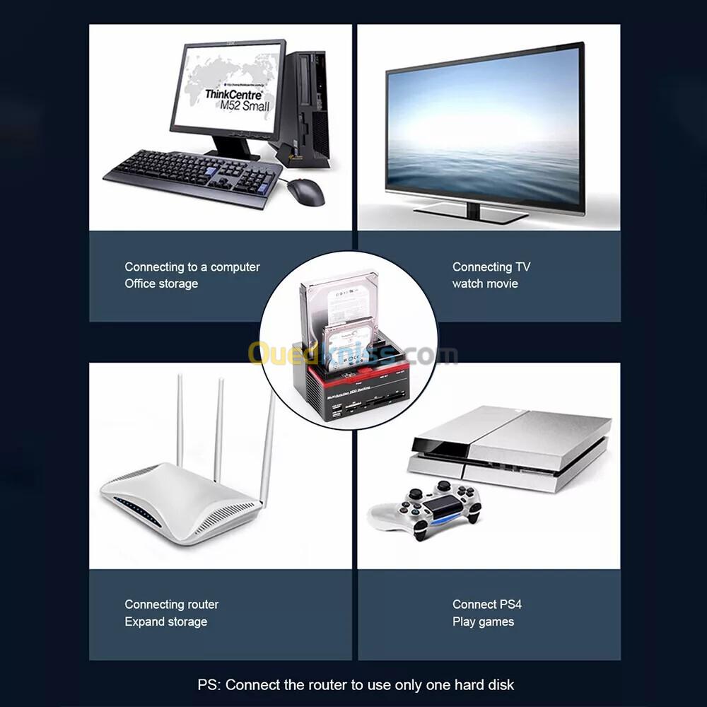 • Solution tout-en-un : Elle remplace plusieurs adaptateurs ou boîtiers externes, offrant une solution complète pour la gestion des disques durs et des cartes mémoire.