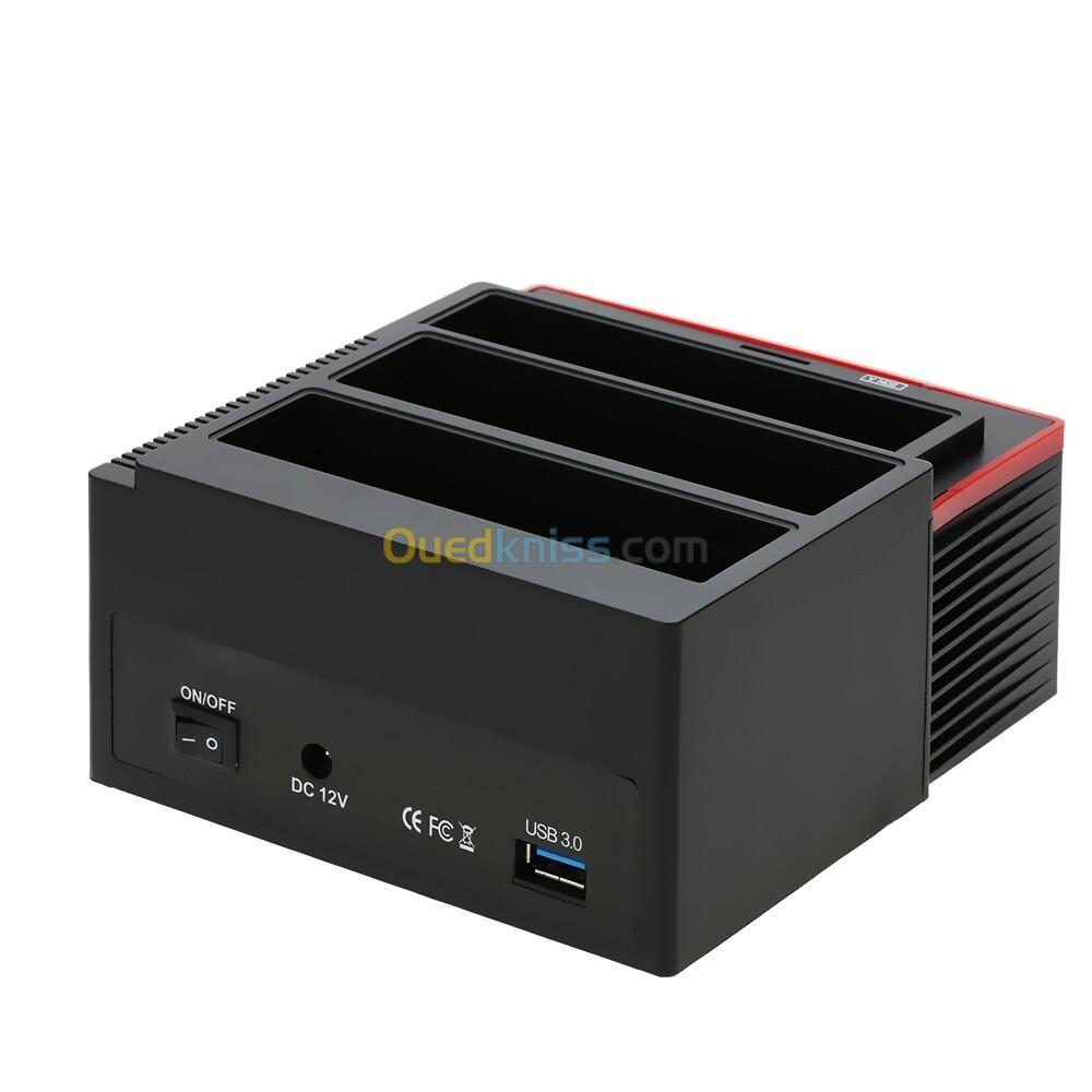 • Station d'accueil universelle pour disque dur externe USB3.0 vers SATA à trois baies. Branchez directement le disque nu, pas besoin d'installer, facile à utiliser.