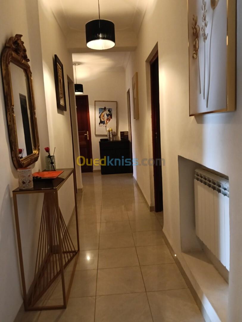 Agence immobilières la colonne , vous propose en Location , un bel appartement de type F4 , totalement meublé , au" val d' Hydra" , d'une superficie de : 120m2 , au 3 éme étage , avec ascenseur, parking "02 place" , salon avec un petit coin plus un balcon , cuisine totalement équipée ouverte sur salon , 03 grandes chambres dont une suite parentale , salle de bain et sanitaire , toutes commodités, " chauffage central , climatisations.." , dans un immeuble très propre avec poste de garde 24 h sur 24 h , quartier calme et sécurisé , pour plus d'informations contactez Merci .