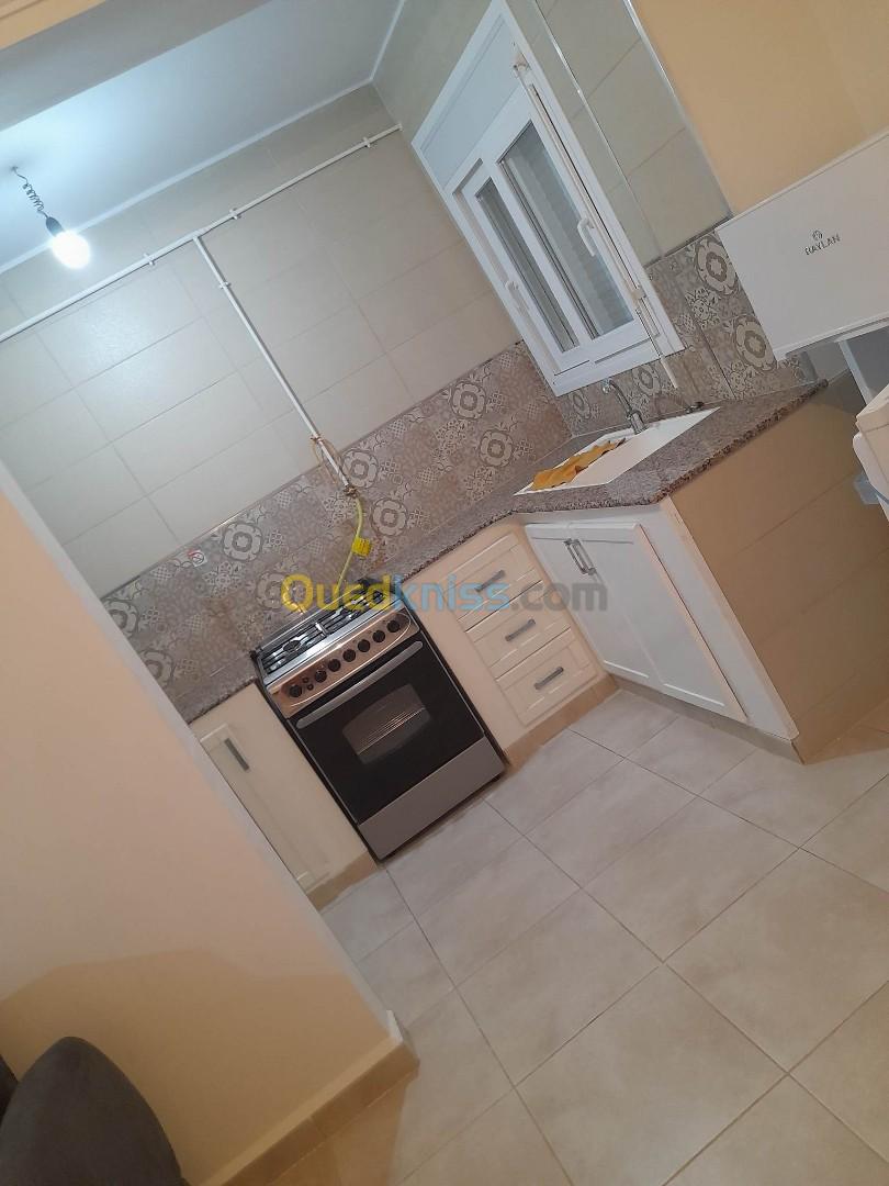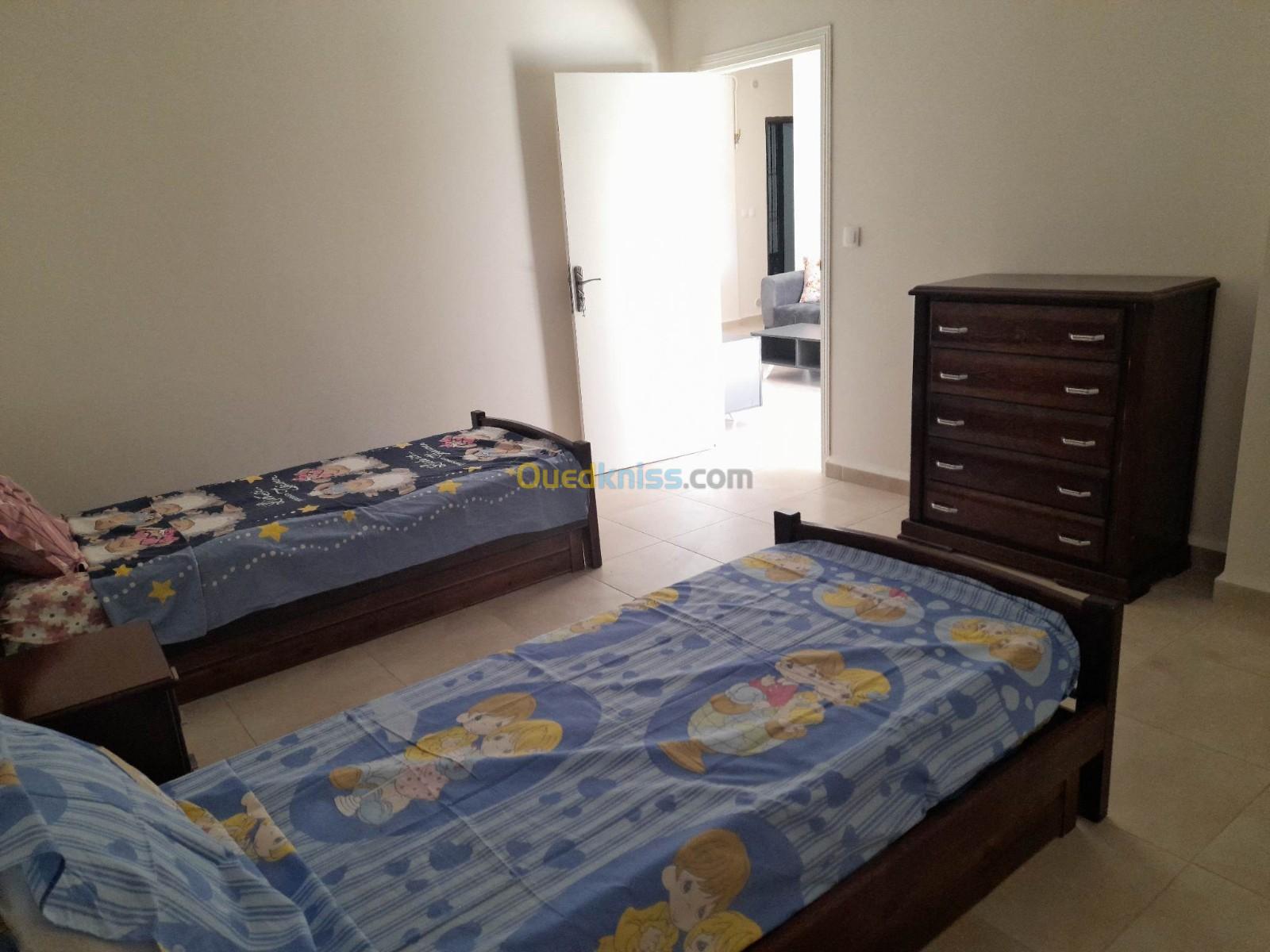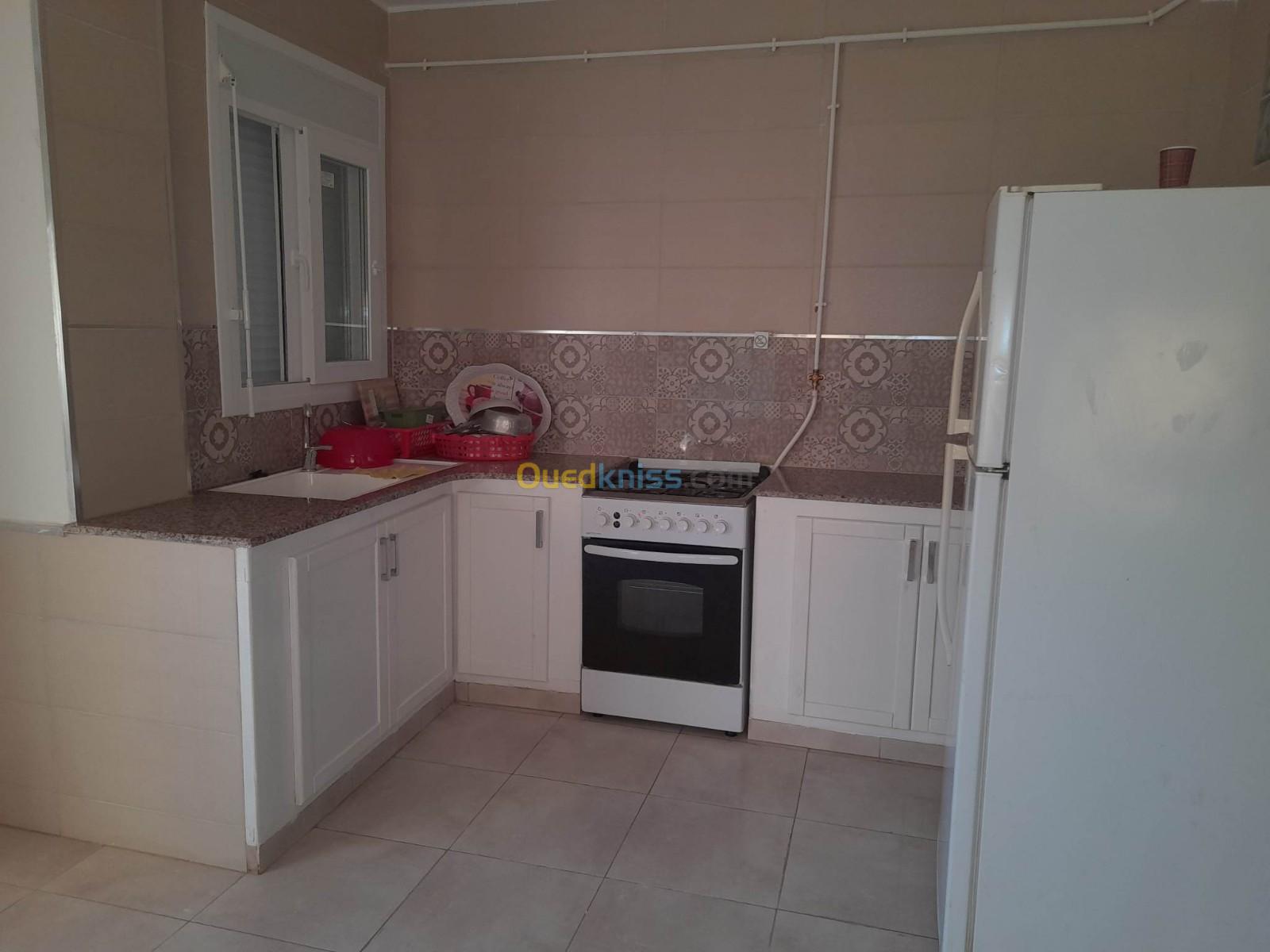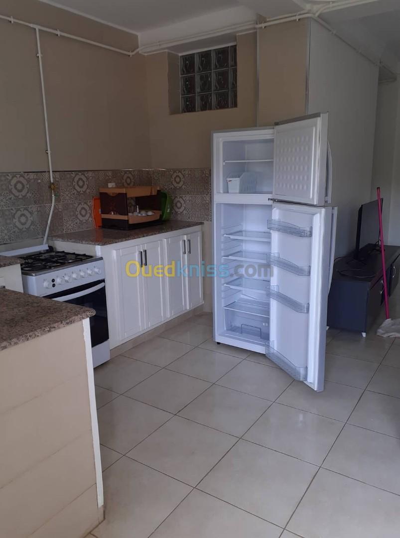 Location à Azeffoun de très beaux appartements de type , F2 ( 3-4 personnes ), F3 ( 5-6 personnes ). Neufs entièrement meublés et équipés dédiés à la location courte, moyenne et longue durée dans une résidence sécurisée accés avec badge au calme et à proximité de tout , restaurants, superettes, plages du centre et plage carroubier sont accéssibles en seulement 12 minutes à pieds par route plate ,goudronnée ( à 300 mètres de la pompe à essence Haddad ).