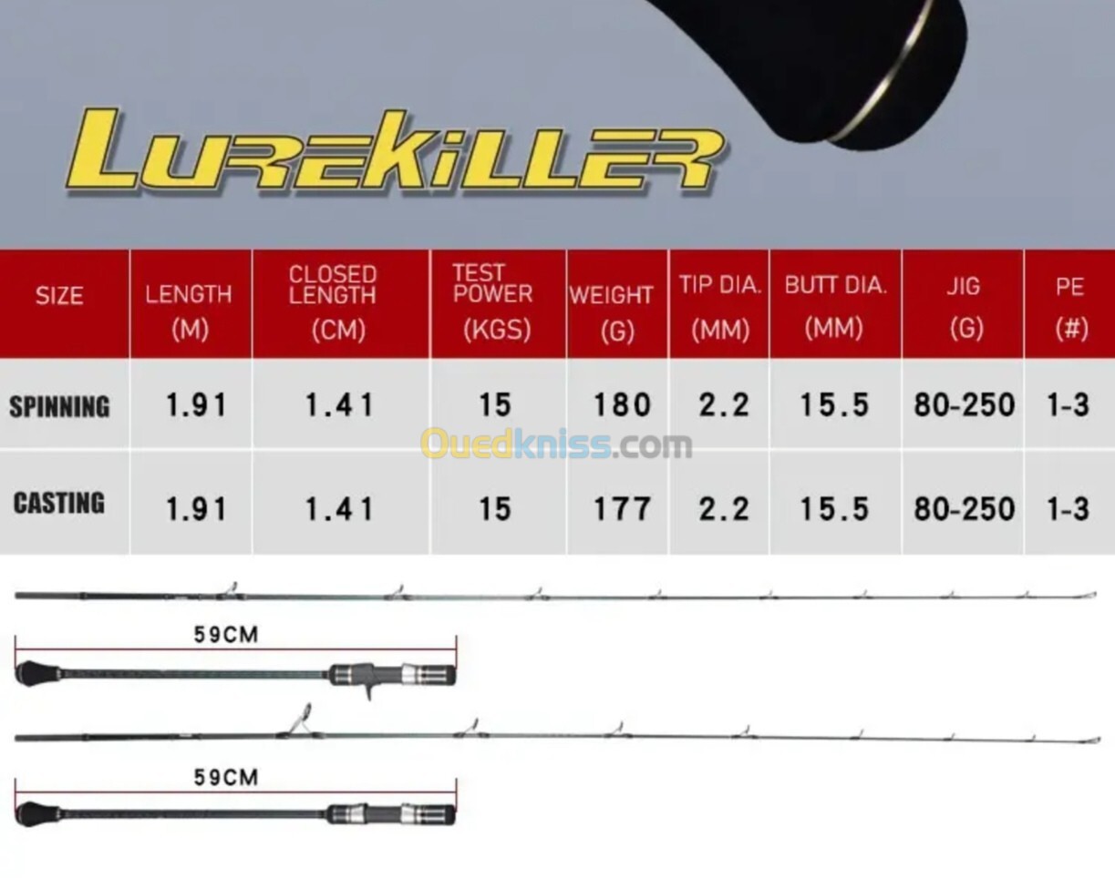 - Puissance jig : 80 – 250 g