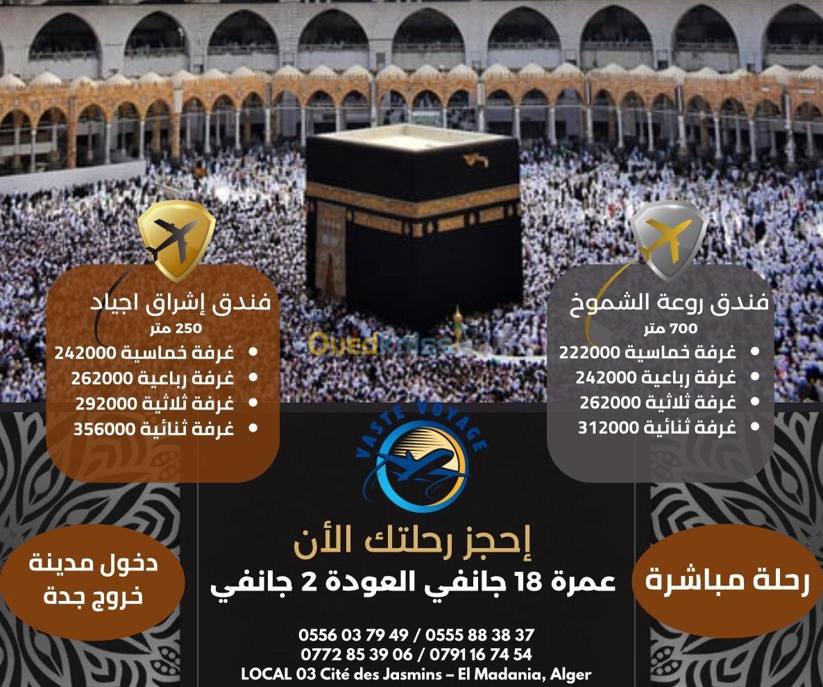 عمرة 18 جانفي رحلة مباشرة فندق روعة الشموخ و اشراق اجياد دخول مدينة ابتداءا من 222000 دخ