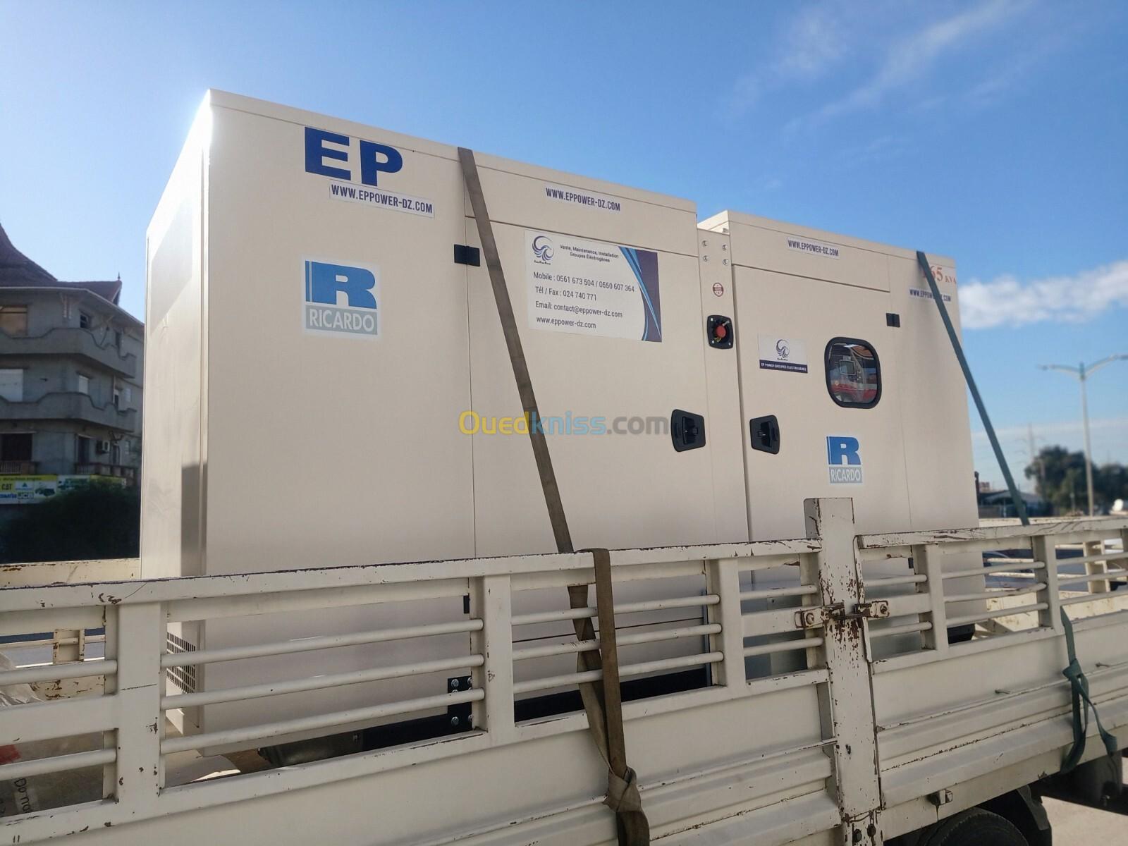 EP POWER entreprise spécialisé dans la vente maintenance et installation des groupes électrogènes vous propose un groupe électrogène Diesel de capacité de 50 KVA RICARDO, Silencieux, Automatique avec un prix CHOC :