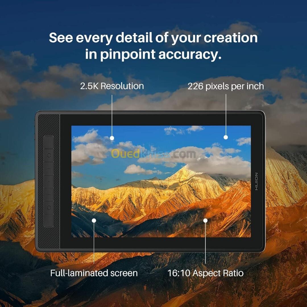 Visuels exceptionnels : avec une résolution QHD de 2560 x 1600 et une densité de pixels élevée de 226ppi, la tablette de dessin numérique Huion Kamvas Pro 13 (2,5K) affichera chaque détail de votre création avec une clarté saisissante.