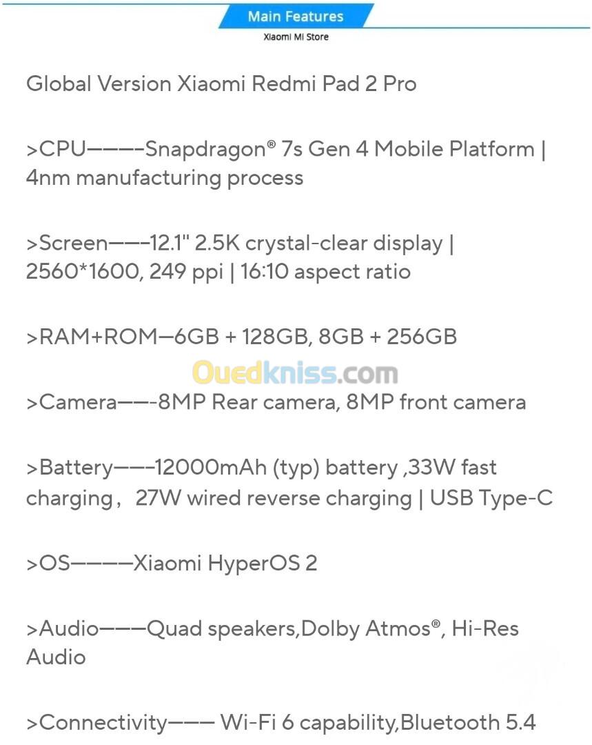Disponible nouvelle arrivage Redmi pad 2 pro
