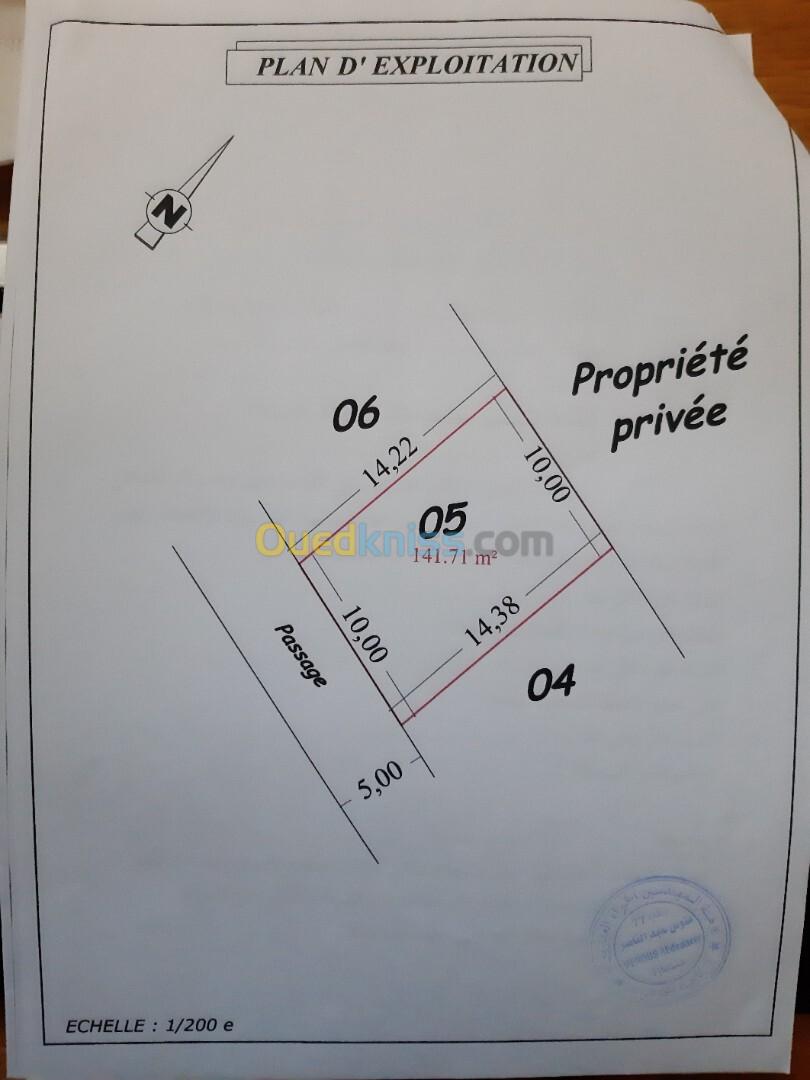 Partculier vend terrain à Boucheghal, APC de Oued Goussine, Beni Haoua, superficie 141m2, acte dans l'idivision en cours de partage