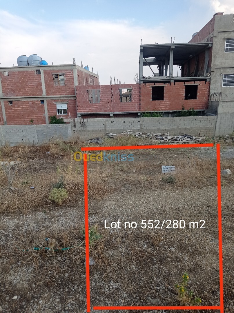 a vendre lot de terrain à batir d'une superficie totale de 280,00 m² situé au Lotissement BENABDELMALEK RAMDANE-CONSTANTINE avec acte notarié et enregistré portant le N°552.