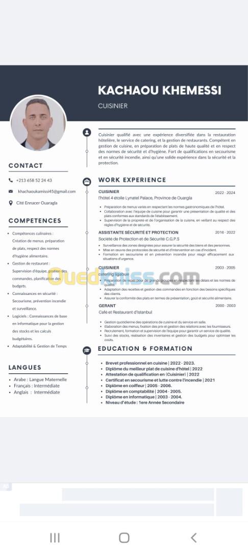 أبحث عن منصب عمل مستقر. طباخ