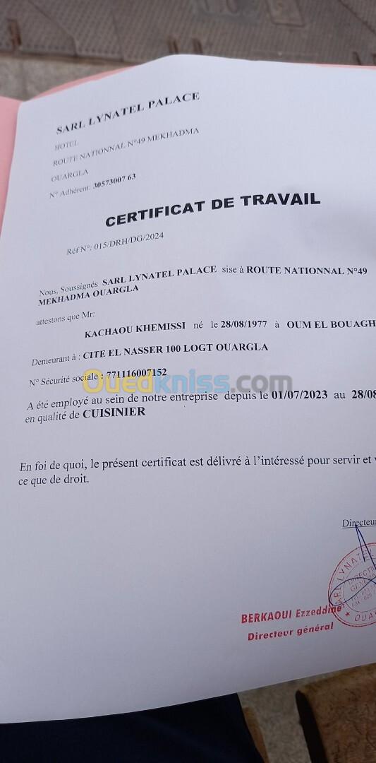 ابحث عن منصب عمل مستقر.في شركة إطعام.أو فندق. ملاحضة.لا أتعامل مع المطاعم الخاصة.