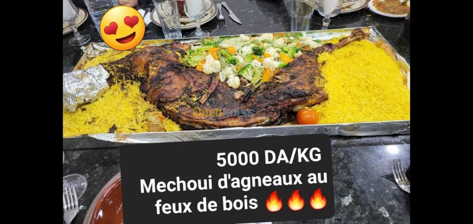 Nous vous proposons des mechoui au feux de bois d'olivier avec garnitures au choix